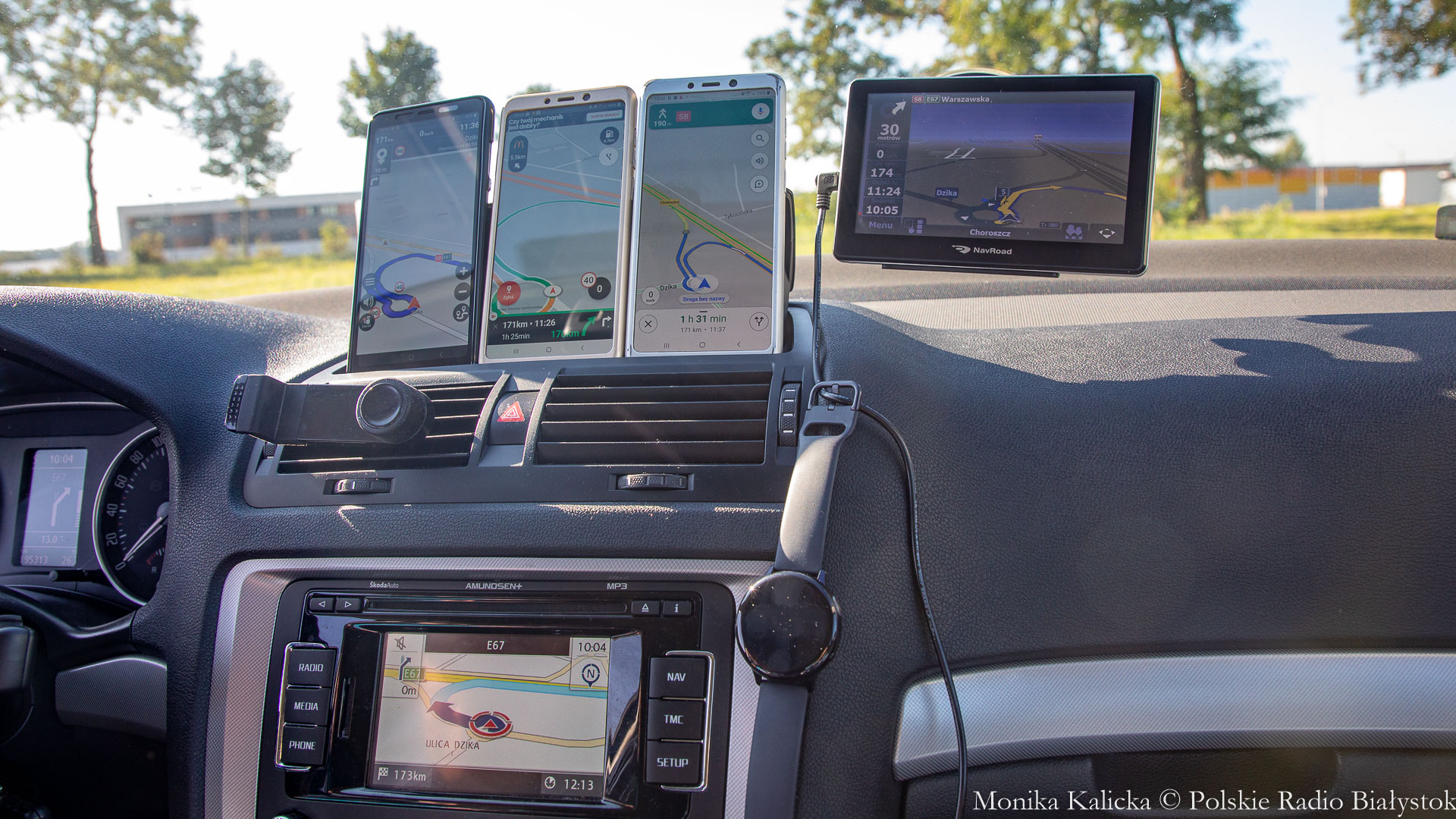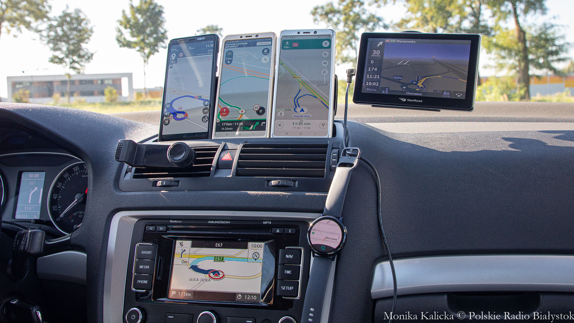 Sześć różnych map (m.in. z komputera pokładowego auta służbowego, z urządzenia nawigującego i aplikacji różnych producentów) ustawione w punkcie startu (Węzeł Choroszcz) na ten sam punkt docelowy (ul. Toruńska w Warszawie) wskazywały długość trasy różniącą się nawet o 10 km, a czas dojazdu wg skrajnych wskazań urządzeń różnił się aż o 50 minut.