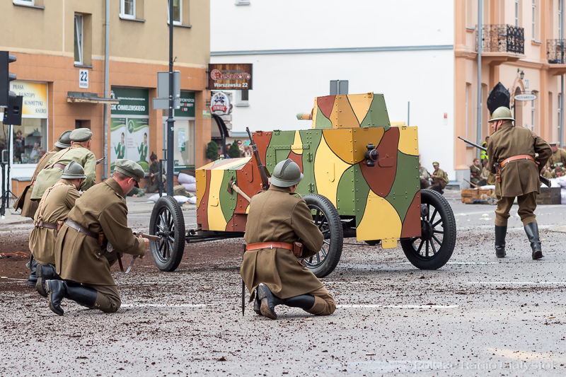 Niedzielna inscenizacja, z efektami pirotechnicznymi i dźwiękowymi, została przygotowana na skrzyżowaniu ulicy Pałacowej i Warszawskiej, które od wczesnego rana było zamknięte dla ruchu. Według scenariusza przygotowanego na podstawie materiałów archiwalnych, maszerująca piechota bolszewicka natknęła się tam na oddział legionistów. Doszło do ostrzału, a potem walki wręcz, również z udziałem cywilów, sprzyjających zarówno Polakom, jak i bolszewikom.