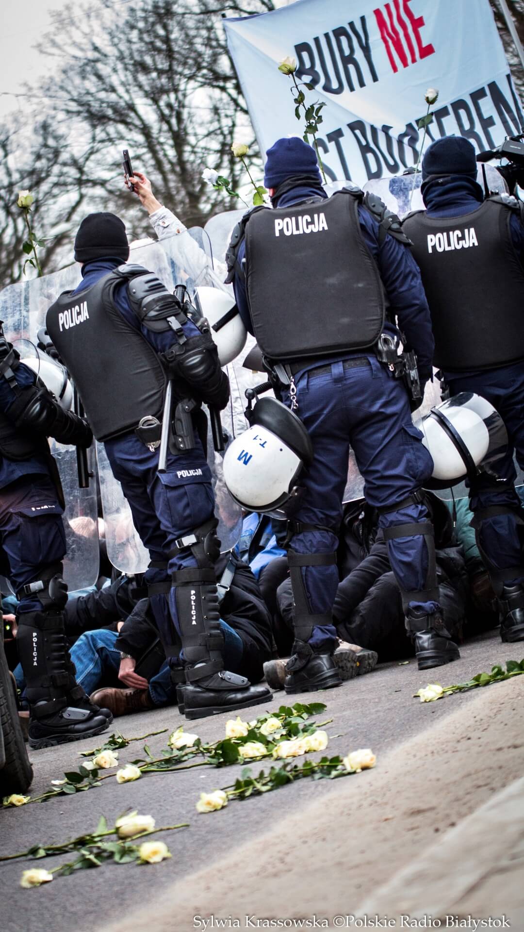 Kilkudziesięciu przeciwników marszu, m.in. z ruchu Obywatele RP, próbowało marsz zatrzymać na jego trasie. Stali z białymi różami w rękach pod hasłem "Bury nie jest bohaterem".