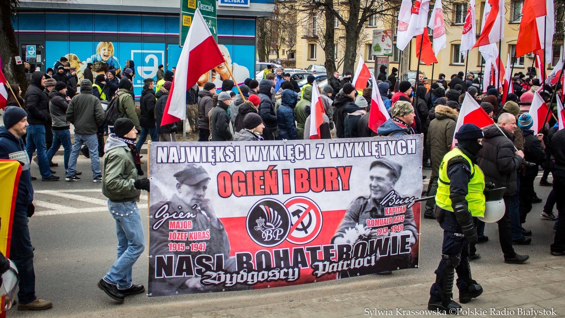 Wśród transparentów był np. poświęcony Romualdowi Rajsowi "Buremu" i Józefowi Kurasiowi, ps. "Ogień". "Najwięksi wyklęci z wyklętych – nasi bohaterowie" – głosił napis na tym banerze z podpisem "Bydgoscy Patrioci".