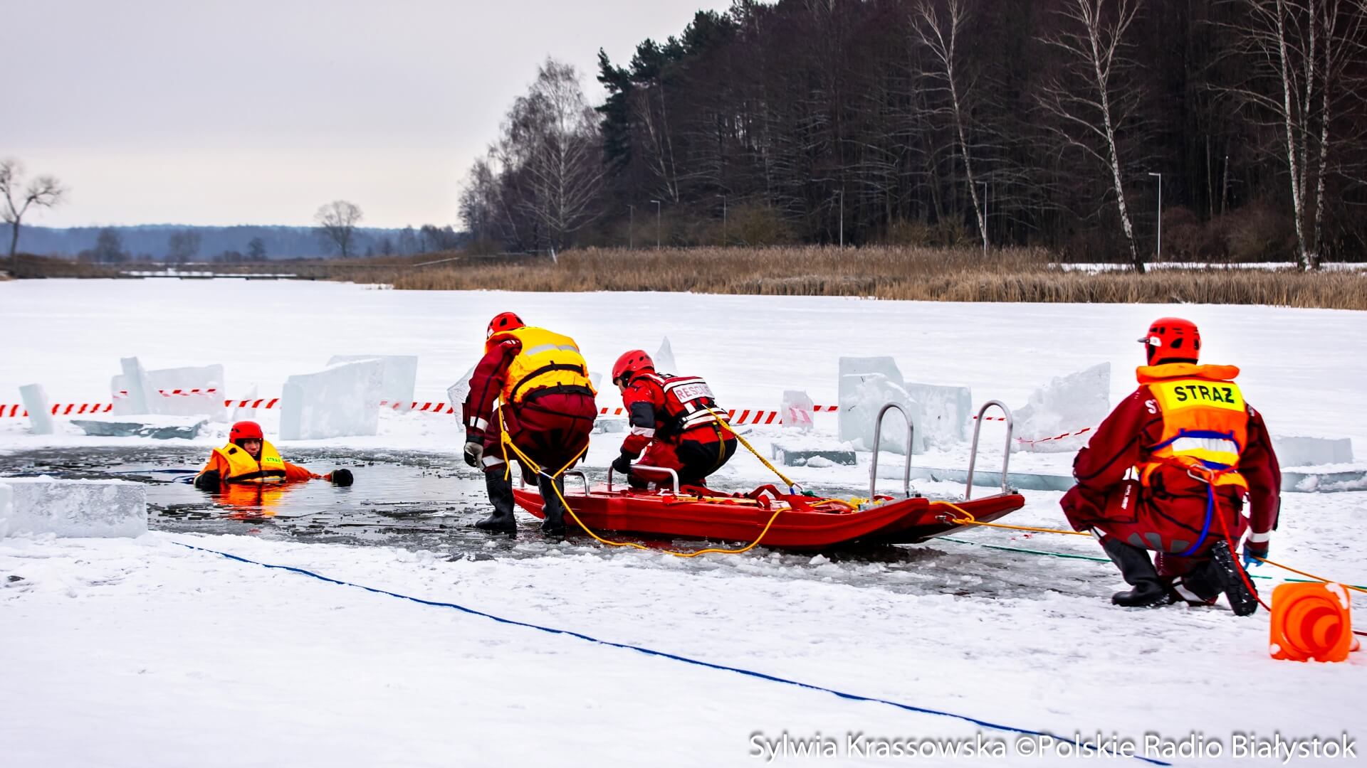 Radio Białystok | Galerie | Galerie - Gdy pęknie lód - ćwiczenia strażaków na Dojlidach [zdjęcia, wideo]
