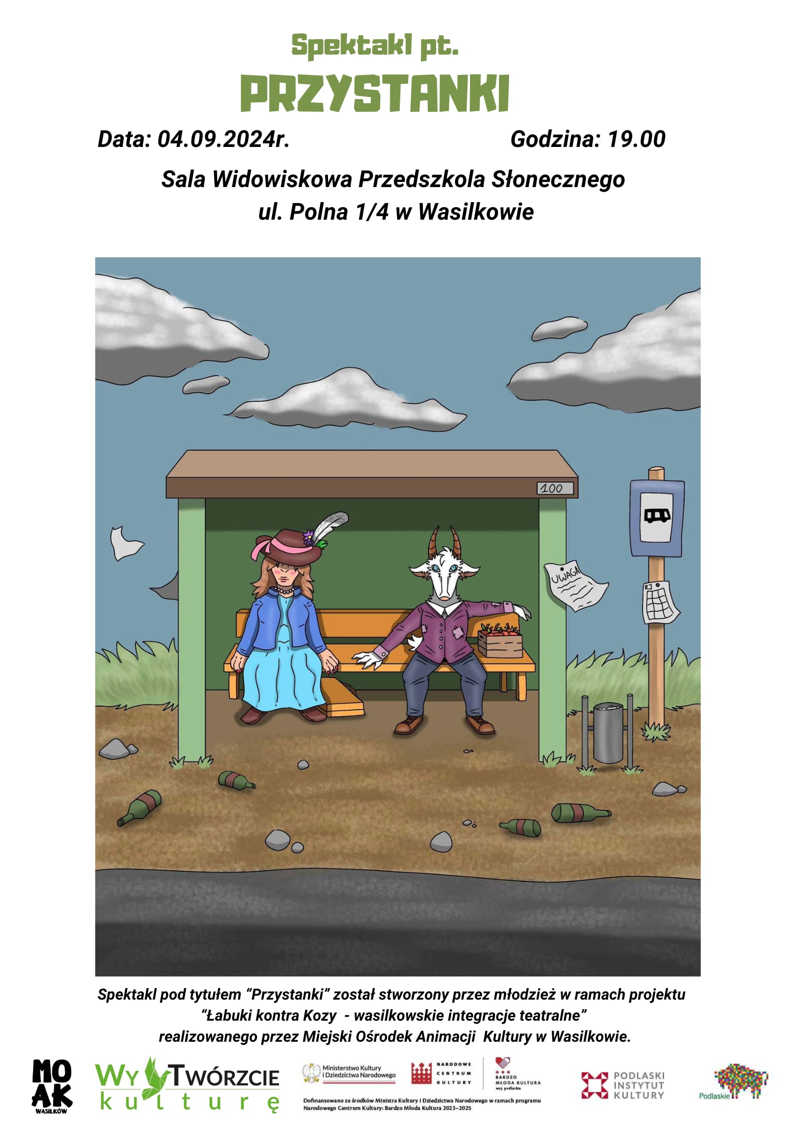 Przestawienie zrealizowano w ramach projektu "Wytwórzcie Kulturę” Podlaskiego Instytutu Kultury, finansowanego ze środków Ministerstwa Kultury i Dziedzictwa Narodowego w ramach programu Narodowego Centrum Kultury "Bardzo Młoda Kultura”.