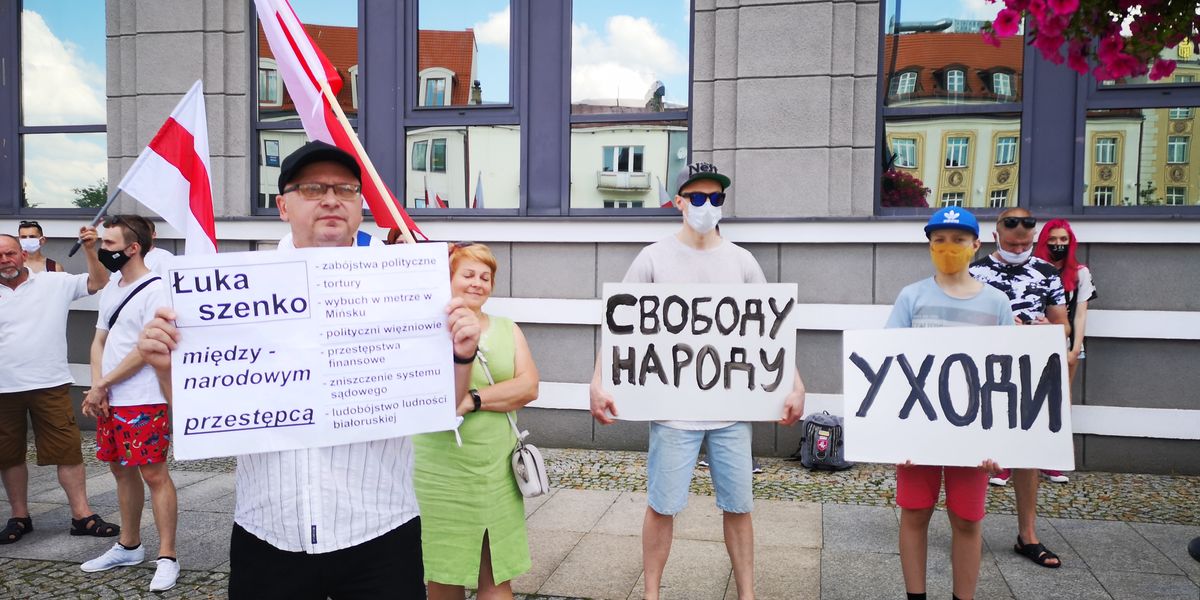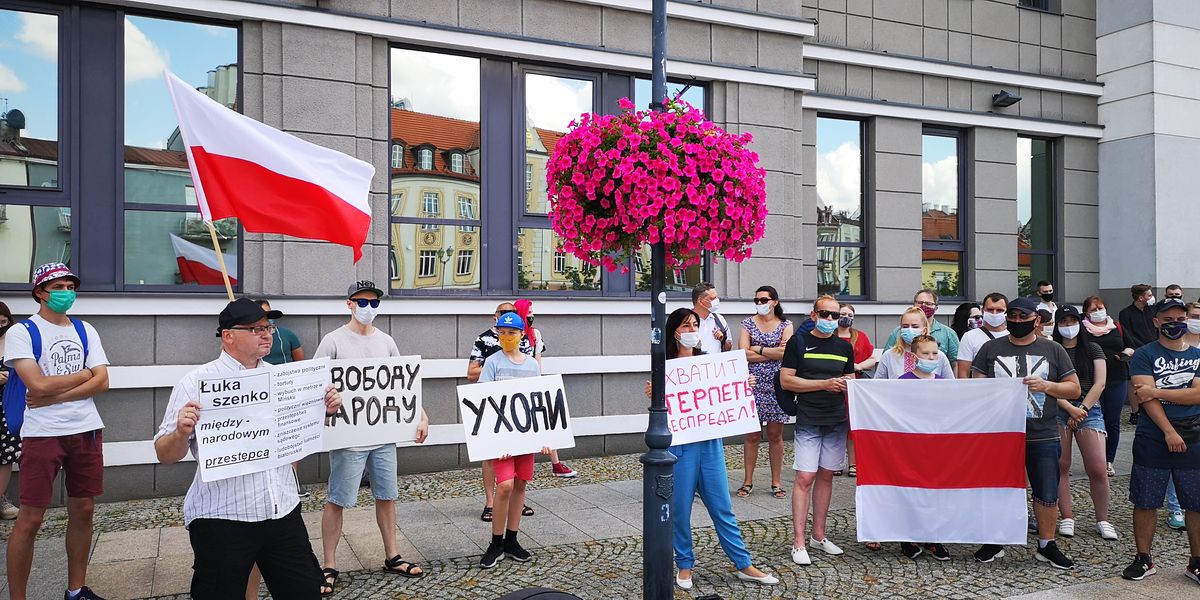 Ponad 50. osób – głównie politycznych i ekonomicznych emigrantów z Białorusi – protestowało także w sobotę na Rynku Kościuszki w Białymstoku.