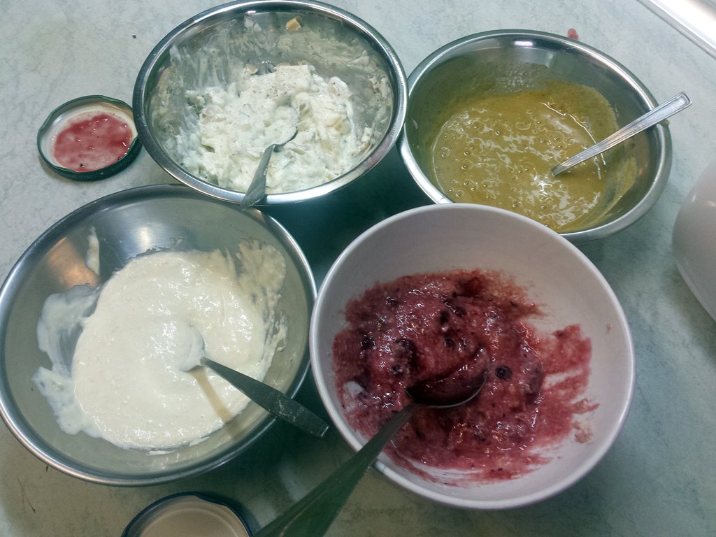sól, cukier, czarny pieprz, gorczyca