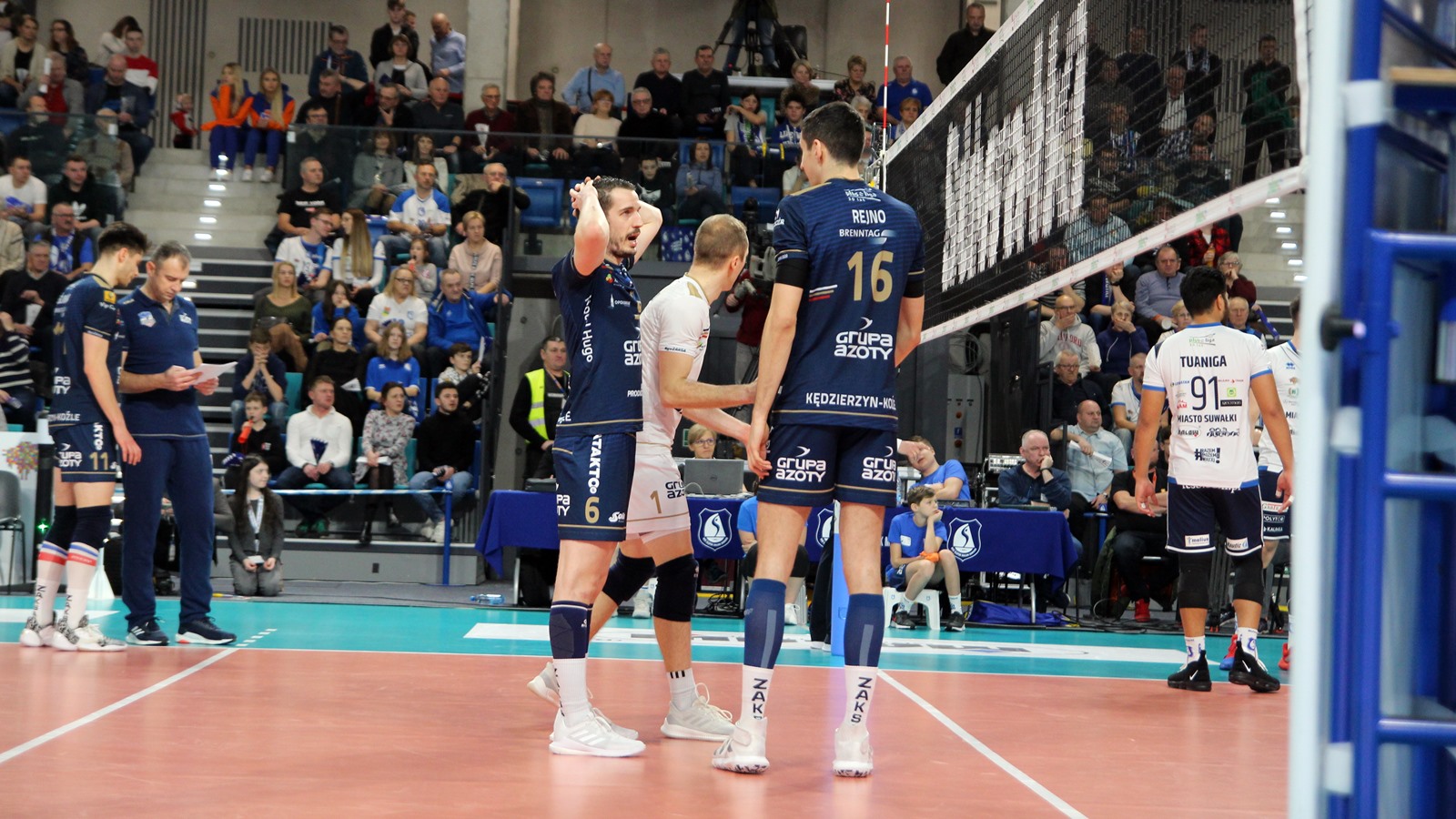 Grupa Azoty ZAKSA Kędzierzyn-Koźle: Toniutti, Wiśniewski -12, Śliwka -16, Semeniuk -13, Baroti -14, Rejno -1, Zatorski (libero) oraz Stępień, Smith -1, Grygiel -1.