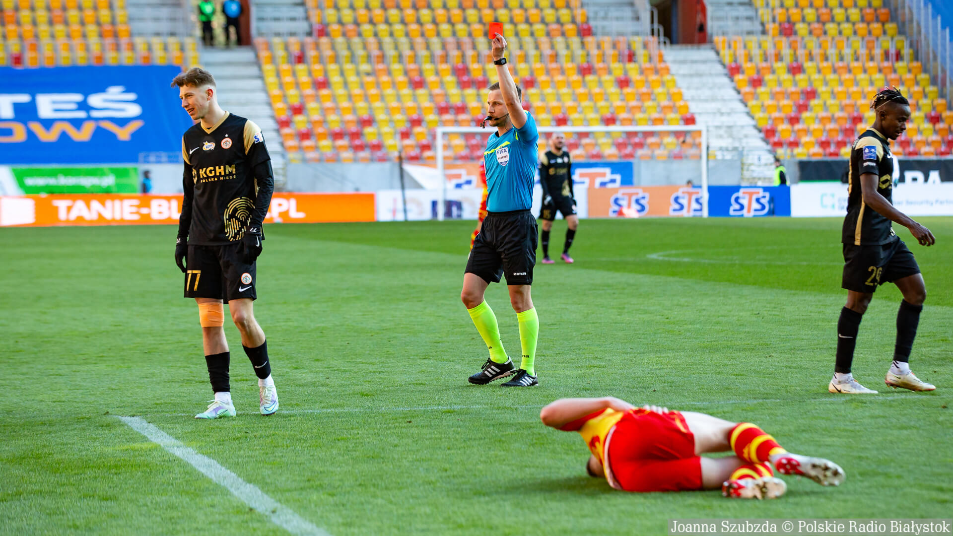 Czerwona kartka za drugą żółtą - Zagłębie Lubin: Mateusz Bartolewski (79).