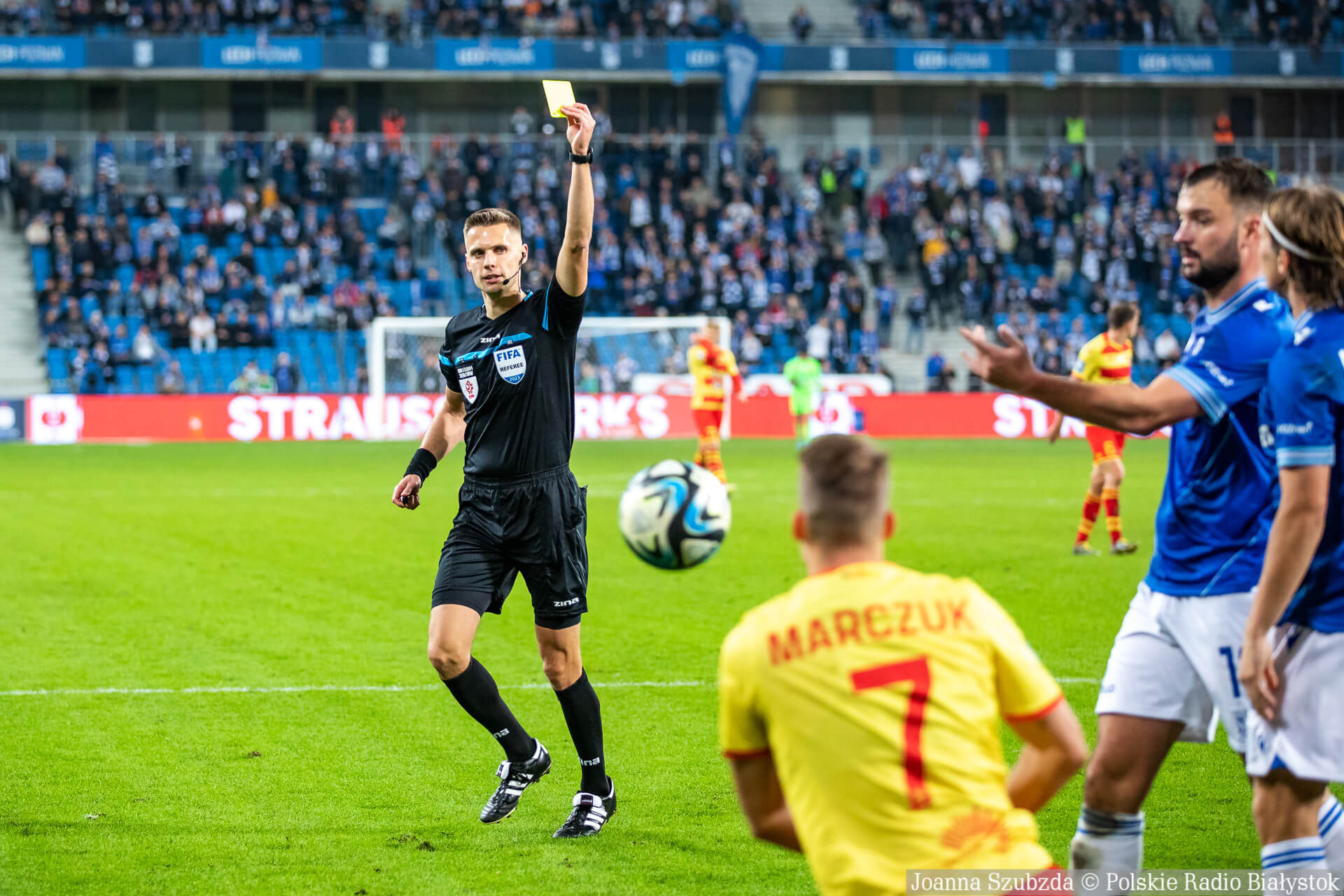 Żółta kartka - Lech Poznań: Adriel Ba Loua, Filip Marchwiński, Elias Andersson, Alan Czerwiński, Kristoffer Velde. Jagiellonia Białystok: Taras Romanczuk.