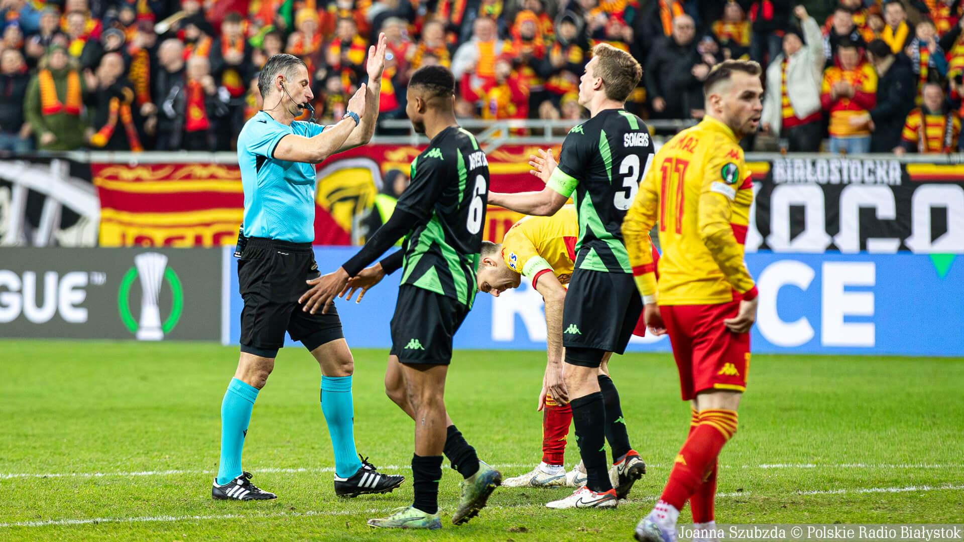 Jagiellonia Białystok zrobiła ogromny krok do awansu do ćwierćfinału Ligi Konferencji. W pierwszym meczu 1/8 finału Jagiellonia wygrała z Cercle Brugge 3:0 (3:0). Dwa gole strzelił Afimico Pululu, a jednego Taras Romanczuk. Rewanż za tydzień w Belgii.