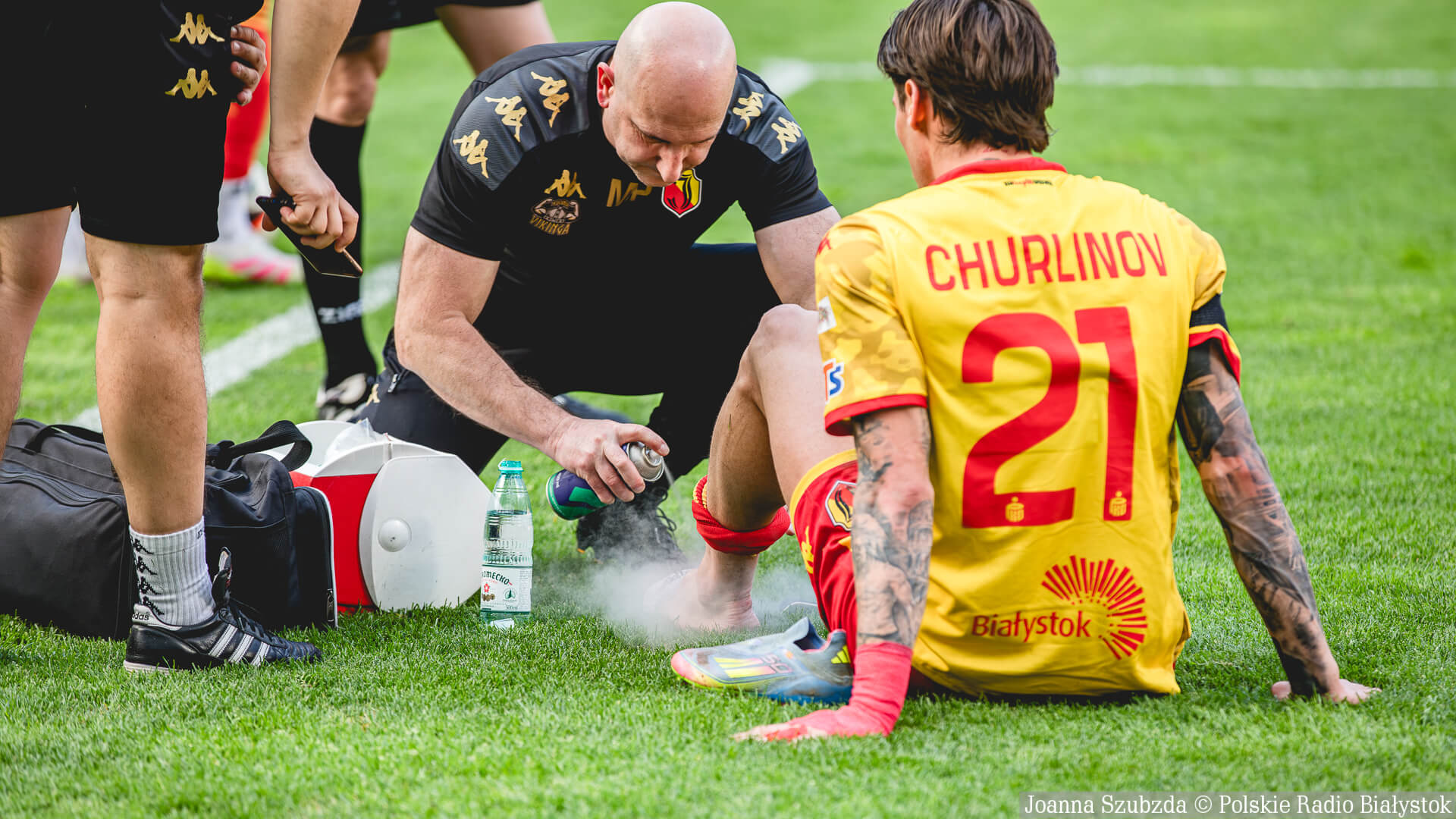 Na początku drugiej połowy zaczęły się kłopoty Jagiellonii w defensywie, bo z boiska musiał zejść jej filar Mateusz Skrzypczak. W pierwszej połowie doznał on urazu po niefortunnym zderzeniu z kolegą z drużyny Jarosławem Kubickim, po kilku minutach drugiej zszedł z boiska. Na środku obrony grał w jego miejsce Moutinho, nominalny lewy obrońca.