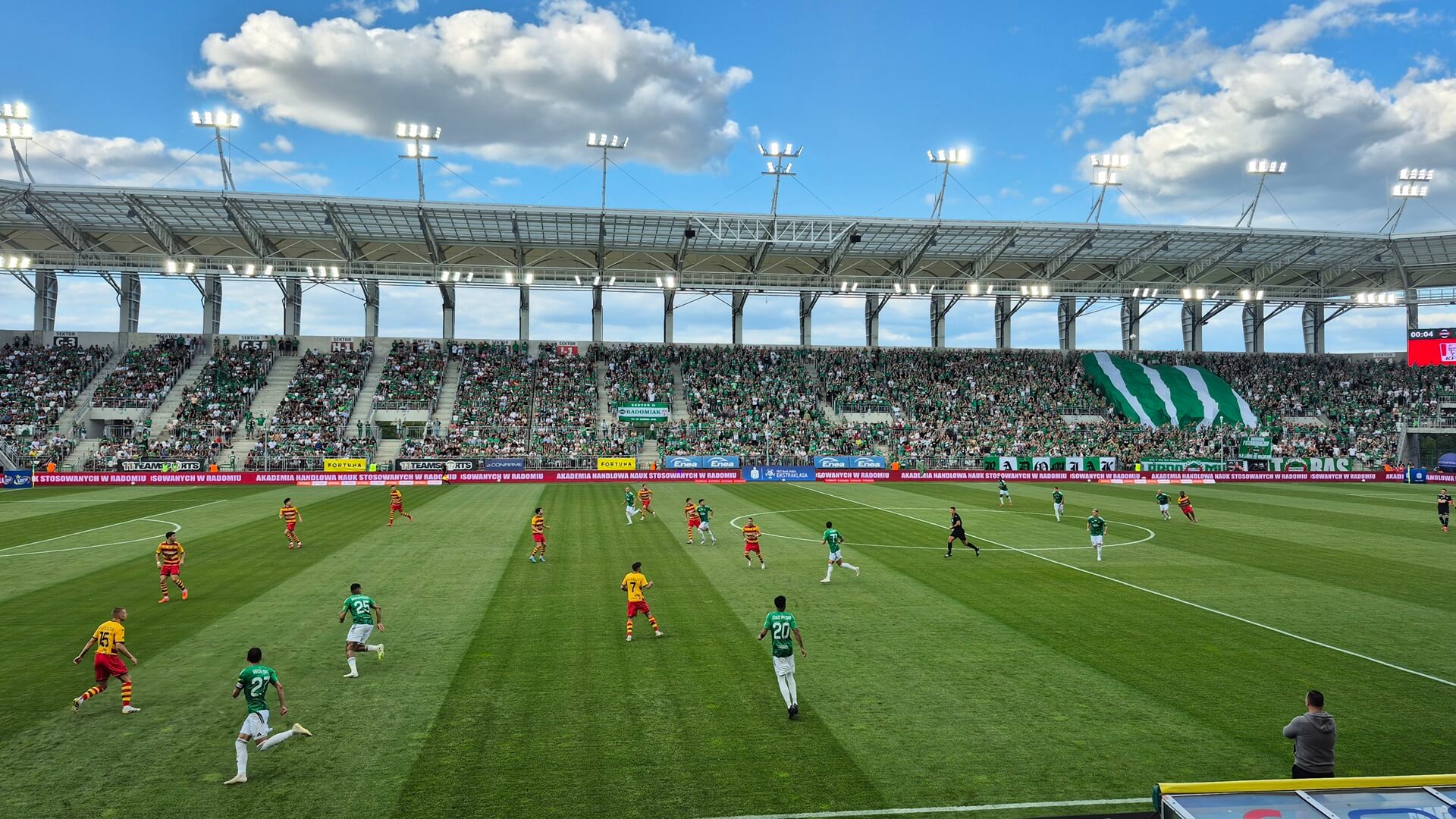 Dopiero w 13. minucie - po świetnym prostopadłym podaniu Christosa Donisa - w sytuacji sam na sam z Sławomirem Abramowiczem znalazł się Jan Grzesik. Obrońca Radomiaka za mocno jednak wypuścił sobie piłkę i nie zdołał oddać strzału.