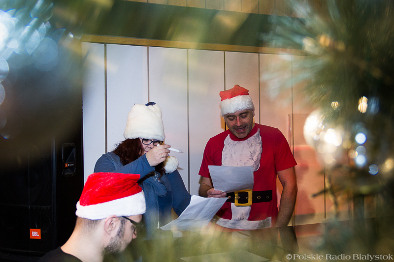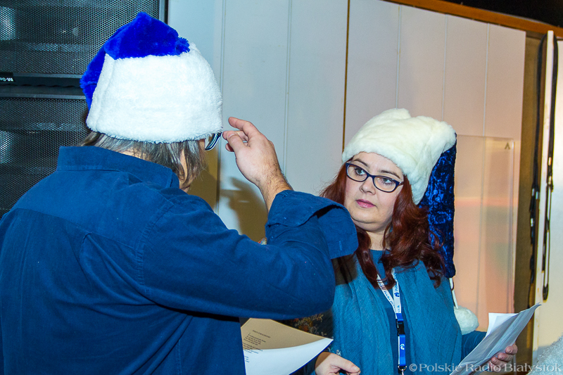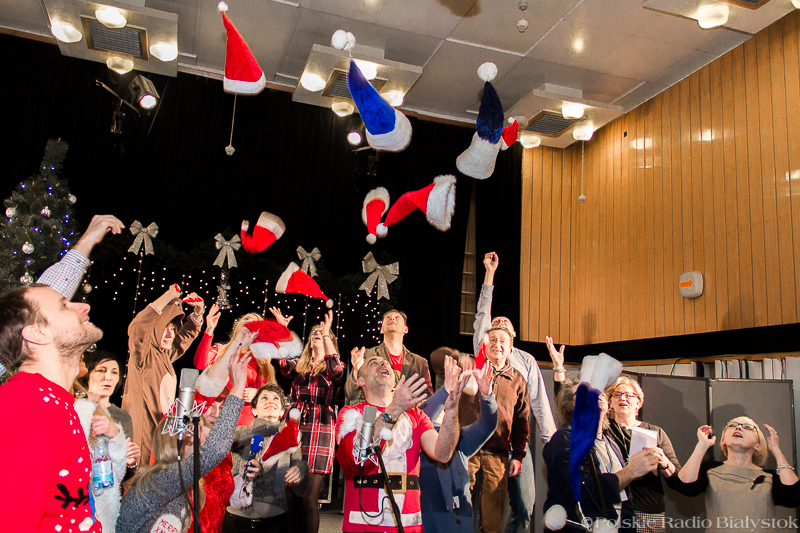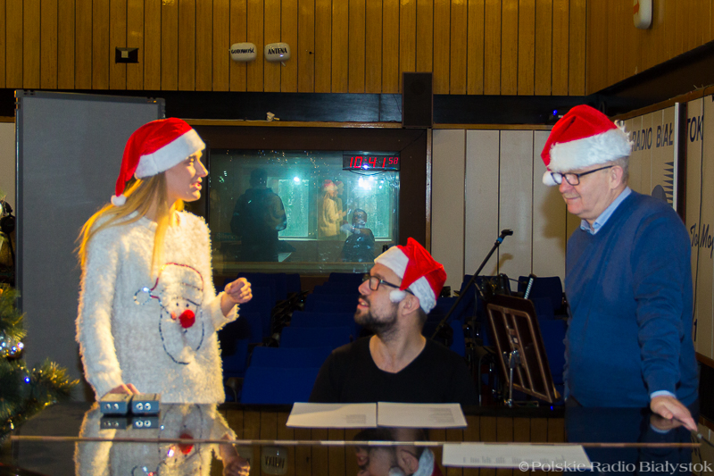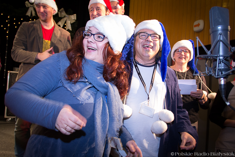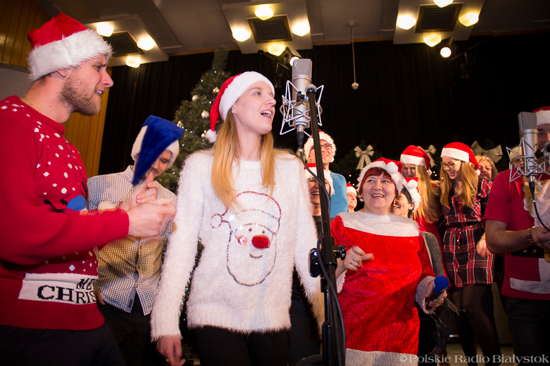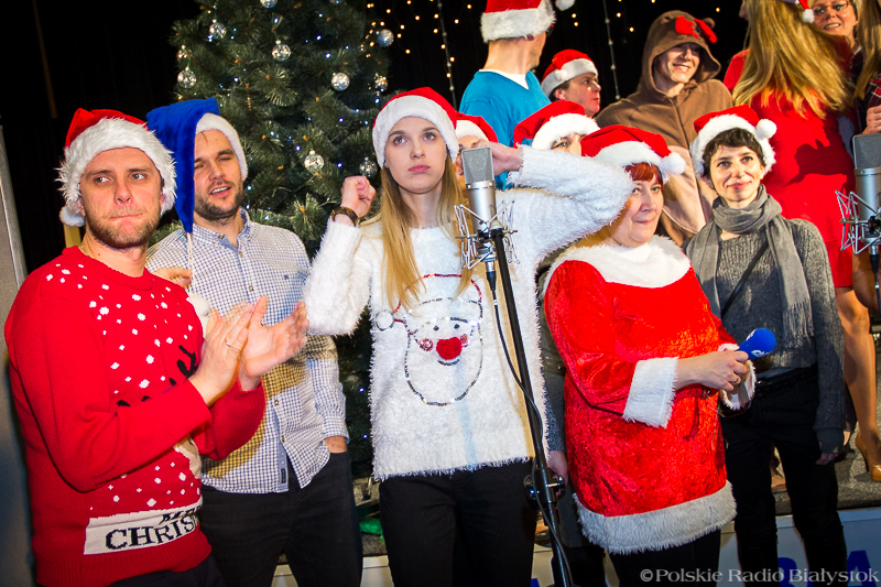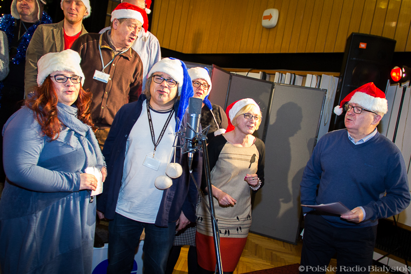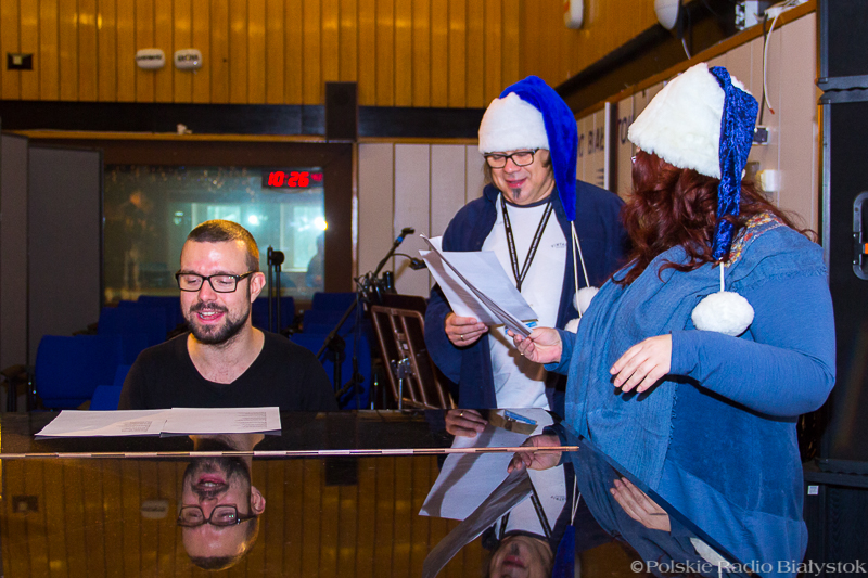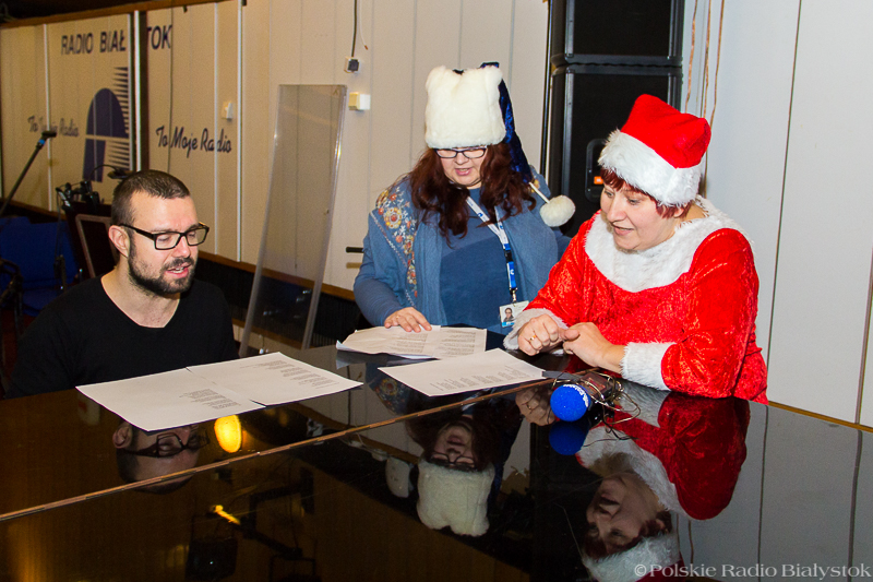 W studiu Rembrandt w czwartek (15.12) od rana było głośno. Nad piosenką najpierw pracowali z kompozytorem radiowcy, którzy wykonują w niej partie solowe, po kilku godzinach dołączyła do nich duża grupa dziennikarzy, pracowników administracji, techniki i księgowości, by wspólnie zaśpiewać refren. "Białe święta w Białymstoku" to pogodna, rytmiczna piosenka, przy której nie da się stać nieruchomo, dlatego oprócz śpiewu nie zabrakło też w studiu falowania, klaskania i pstrykania palcami.