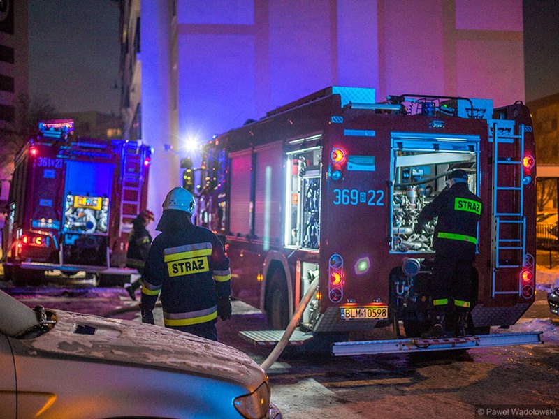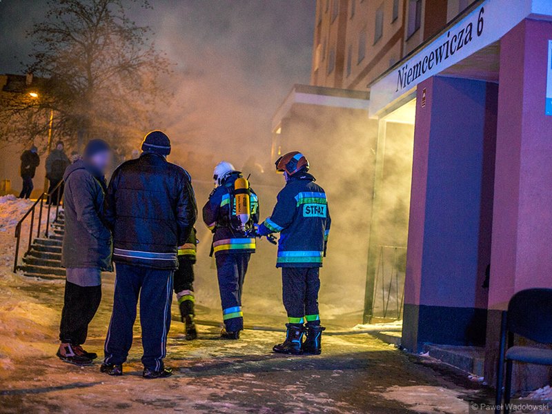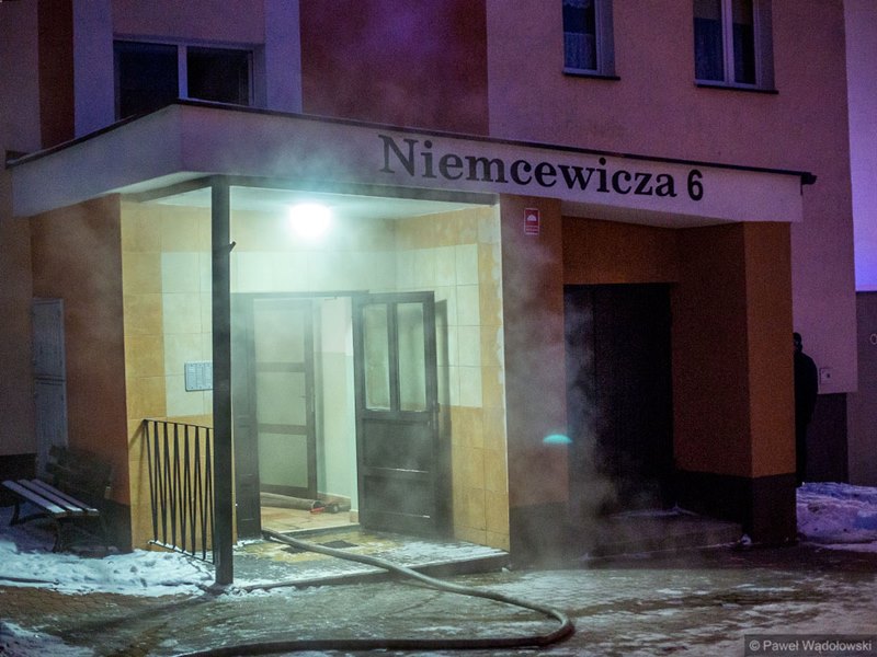 W wieżowcu przy ul. Niemcewicza w Łomży doszło do pożaru piwnicy. Dym przedostał się pionem wentylacyjnym do mieszkania najprawdopodobniej na 6. piętrze.