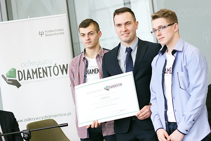 Projekt uczniowie skonsultowali m.in. z nagradzanym w licznych konkursach studentem wydziału informatyki Politechniki Białostockiej Petrosem Psyllosem (wcześniejszym stypendystą "Odkrywców diamentów"), który znalazł się w topowym zestawieniu europejskich innowatorów poniżej 30. roku życia, który opublikował amerykański magazyn Forbes. "Taka pomoc merytoryczna jest też nam potrzebna" - podkreślił Błachewicz.