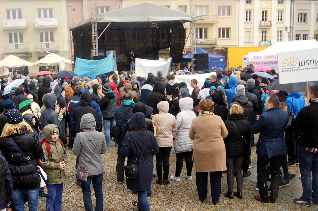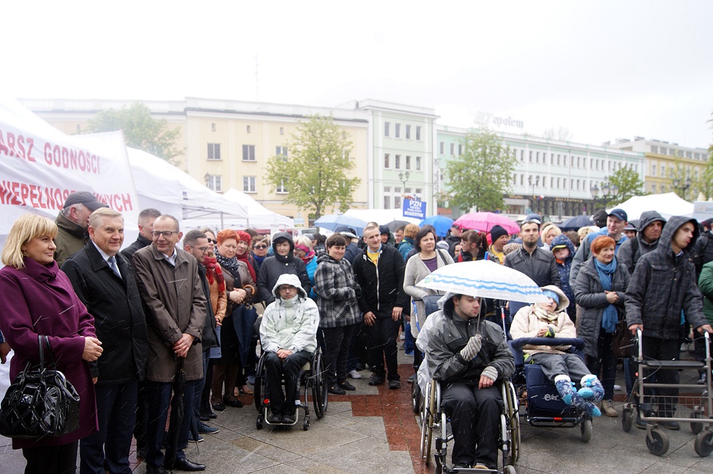 Jedna z organizatorek marszu, prezes Stowarzyszenia Wspierania Aktywności Niepełnosprawnych Intelektualnie "Aktywni" Ludmiła Bogalska powiedziała, że marsz jest organizowany po to, by przypomnieć wszystkim o godności każdego człowieka. Odczytała przy tym fragment Powszechnej Deklaracji Praw Człowieka o, jak to określiła, "oczywistości, ale takiej, o której trzeba ciągle pamiętać", że "wszyscy ludzie rodzą się wolni i równi w swojej godności i w swych prawach".