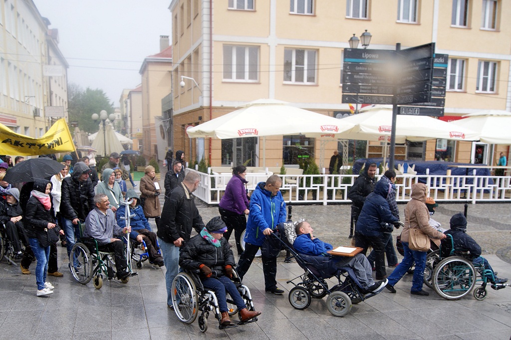 Mimo niesprzyjającej pogody, zimna i padającego śniegu, uczestnicy marszu przeszli główną ulicą miasta - Lipową na Rynek Kościuszki, gdzie przygotowano festyn integracyjny z występami artystycznymi, zabawami, konkursami, prezentacjami prac artystycznych osób niepełnosprawnych.