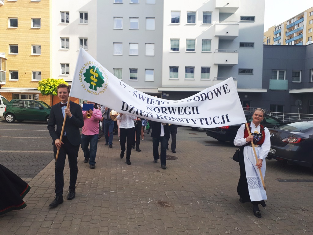 Norwescy studenci Uniwersytetu Medycznego w Białymstoku, marszem ulicami miasta uczcili święto niepodległości swojego kraju.