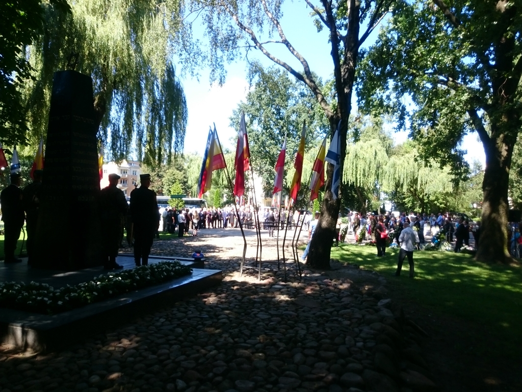 Główna miejska uroczystość odbyła się w południe przy pomniku bohaterów getta, który stoi na placu noszącym imię przywódcy powstania Mordechaja Tenenbauma-Tamaroffa. By nie wpaść w ręce Niemców, wraz ze swoim zastępcą Danielem Moszkowiczem, Tenenbaum popełnił samobójstwo.