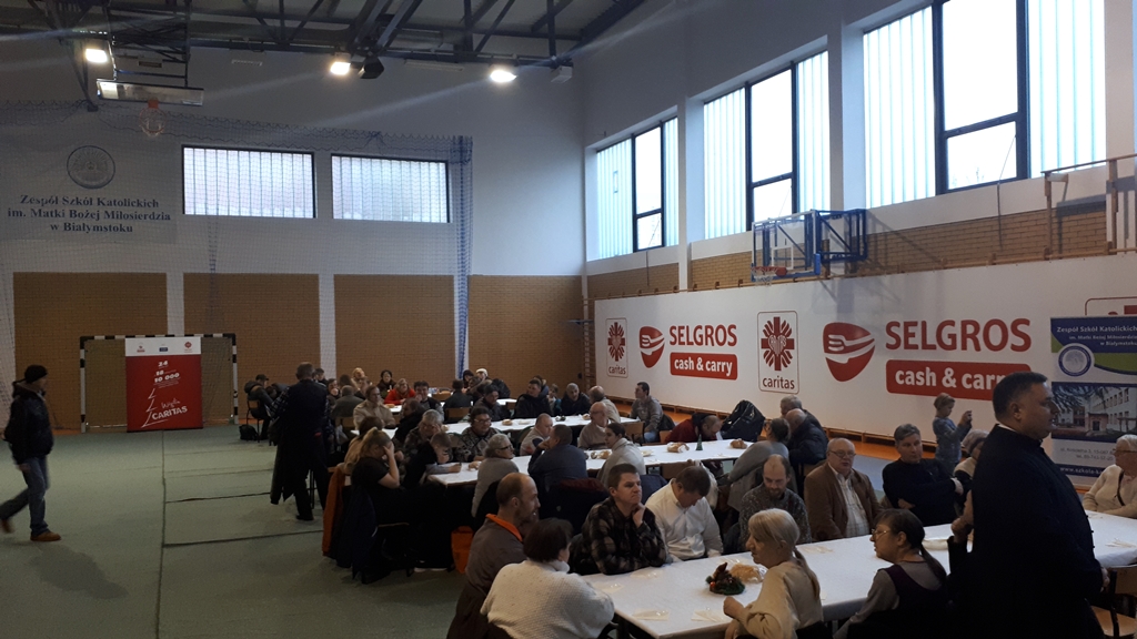 Po raz czwarty Caritas Archidiecezji Białostockiej wspólnie z białostocką Fundacją Rodziny Czarneckich zorganizowała wigilijną kolację dla setek osób w Zespole Szkół Katolickich. Była to jedna z 18 Wigilii Caritas organizowanych w niedzielę w całym kraju.