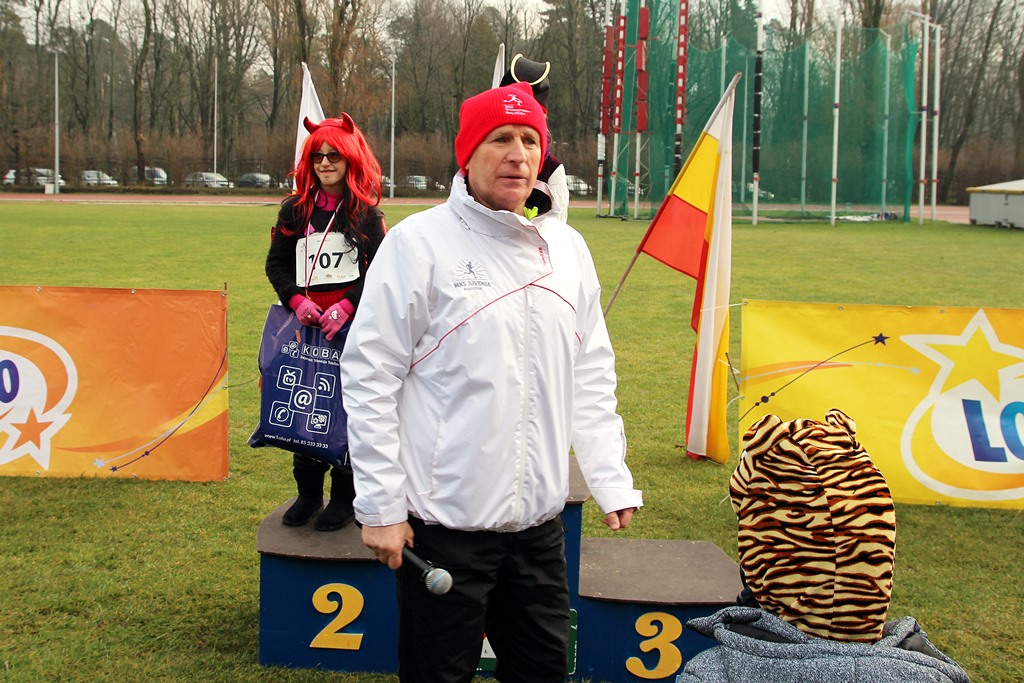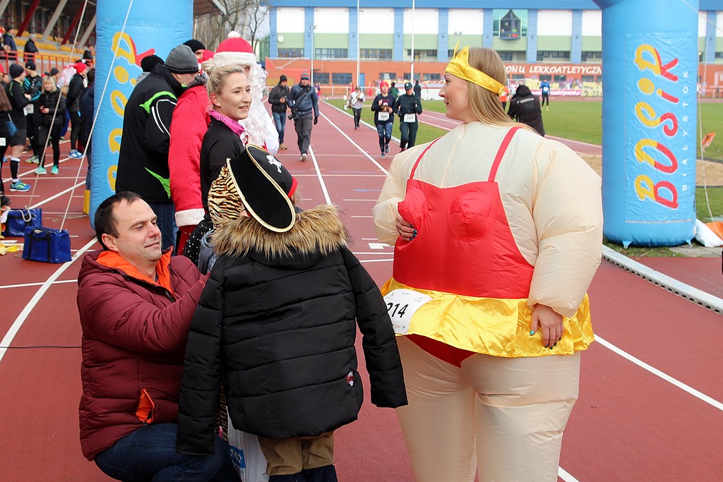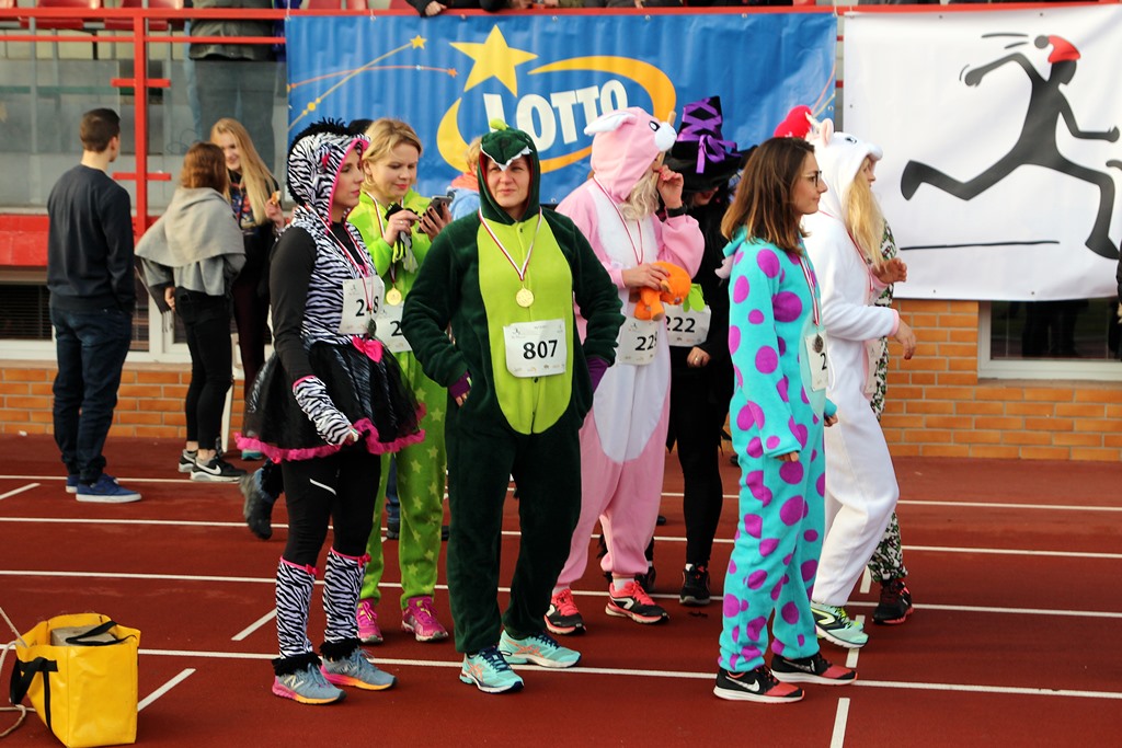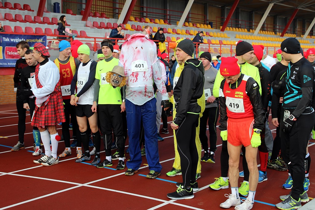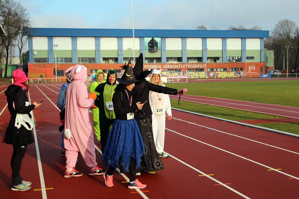 Czarownice, muszkieter, Szkot, czy postaci z kreskówek - to tylko niektóre z przebrań uczestników Biegu Sylwestrowego w Białymstoku. Na stadionie w Zwierzyńcu rok pożegnało na sportowo ponad 250 osób.