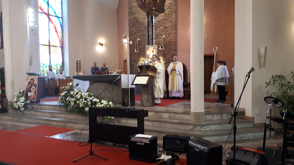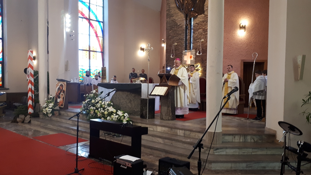 Msza święta w kościele św. Krzyża w Łapach rozpoczęła się o 11:30. Nabożeństwo odprawił bp. Stanisław Stefanek. Można było również posłuchać koncertu zespołu wokalno-instrumentalnego Komendy Miejskiej Policji w Białymstoku.