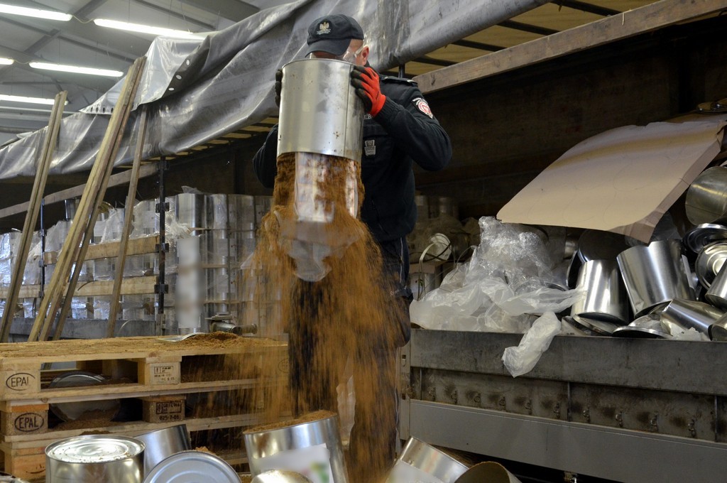Tytoniowa kontrabanda zamiast transportu żywicy syntetycznej w puszkach, źródło: Podlaska KAS