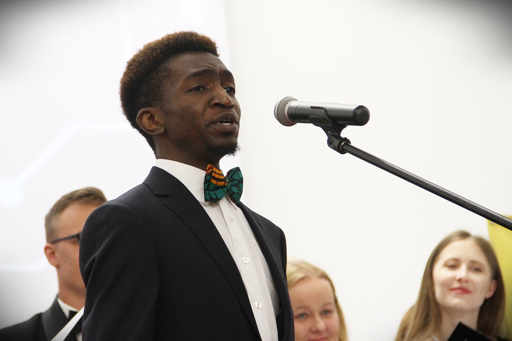 Hasło tegorocznej imprezy to: "Nauka scala". Jak wyjaśnił Sikorski, 60 lat temu noblista Jack Kilby uruchomił pierwsze układy scalone. - To hasło przenieśliśmy na te nasze uroczystości związane z nauką. To święto nauki, gdzie scalamy uczestników i odbiorców tejże nauki, przybliżając im ją z terenu trzech miast: Białegostoku, Łomży i Suwałk - powiedział prorektor.