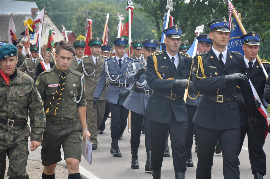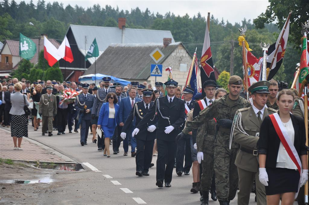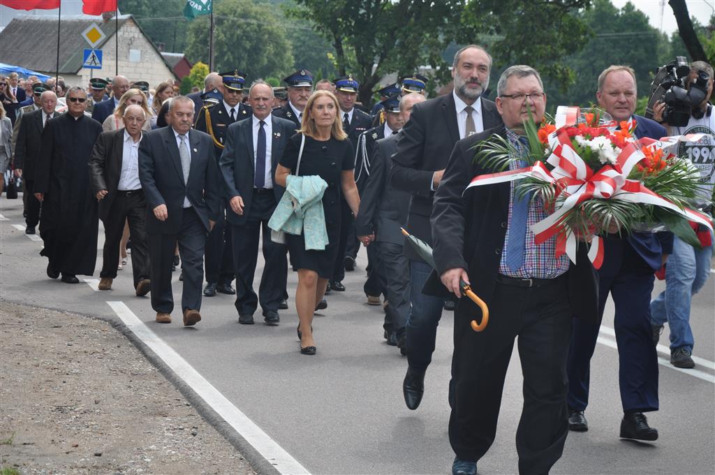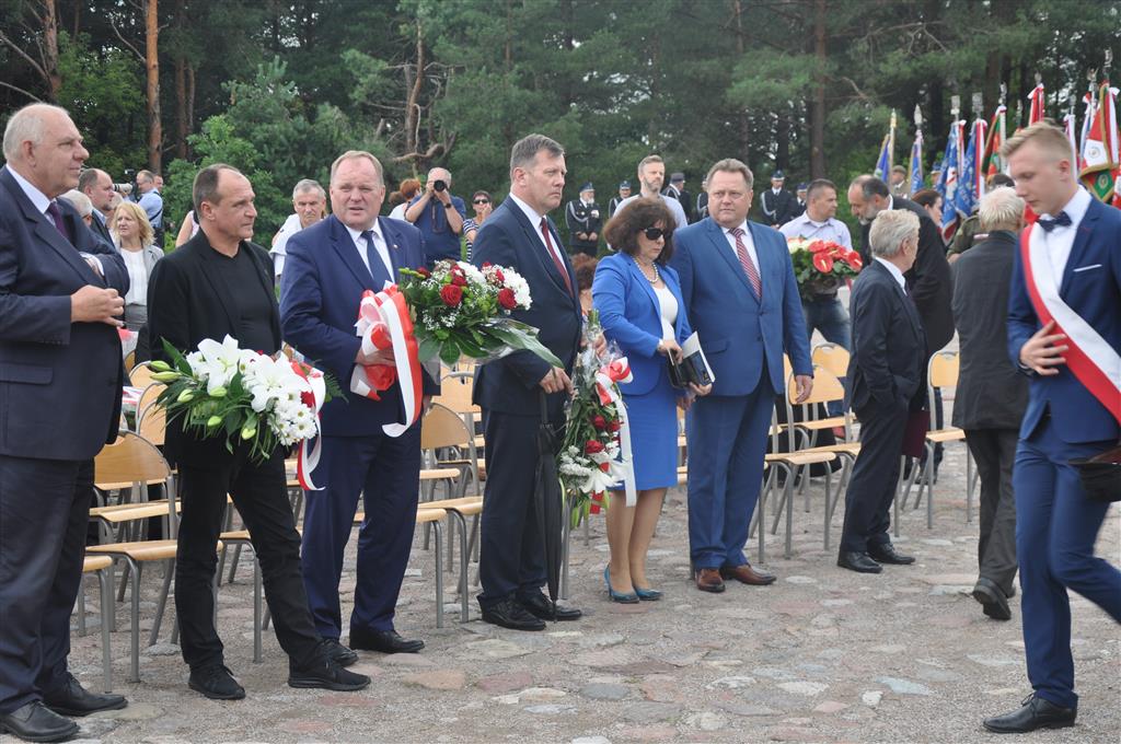 Po południowym nabożeństwie uczestnicy przeszli na Górę Krzyży, gdzie znajduje się instalacja upamiętniająca ofiary obławy. Tam o godz. 13:40 rozpoczęły się oficjalne wystąpienia.