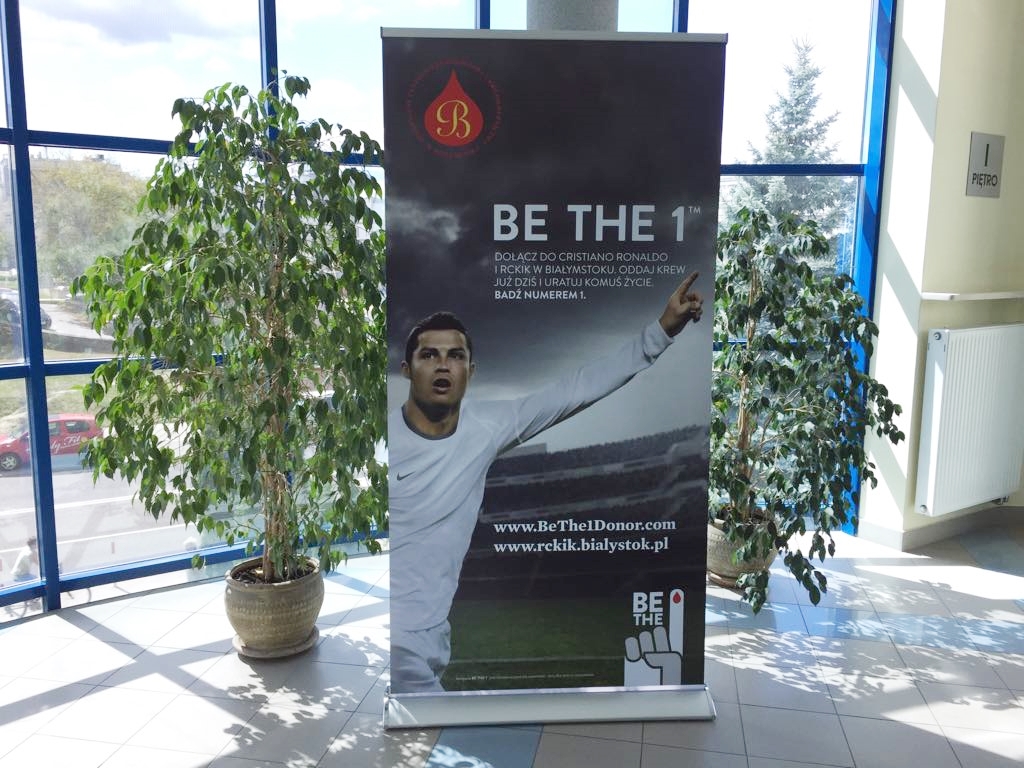 Piłkarz Cristiano Ronaldo promuje Regionalne Centrum Krwiodawstwa i Krwiolecznictwa w Białymstoku - placówka dołączyła do kampanii reklamowej Be The 1, której ambasadorem jest jeden z najlepszych piłkarzy świata.