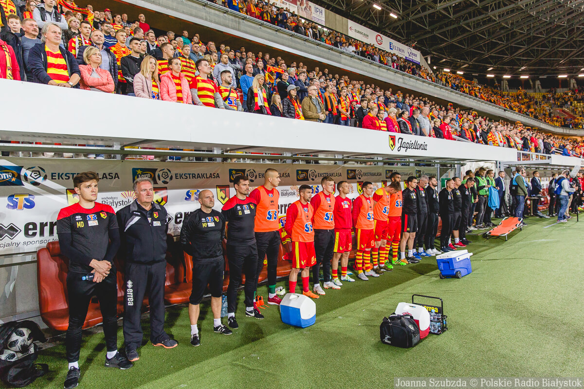 Jagiellonia Białystok: Marian Kelemen - Jakub Wójcicki (33. Łukasz Burliga), Ivan Runje, Nemanja Mitrovic, Guilherme Sitya - Przemysław Frankowski, Martin Pospisil, Bartosz Kwiecień, Arvydas Novikovas (76. Mile Savkovic) - Cillian Sheridan, Roman Bezjak (88. Karol Świderski).