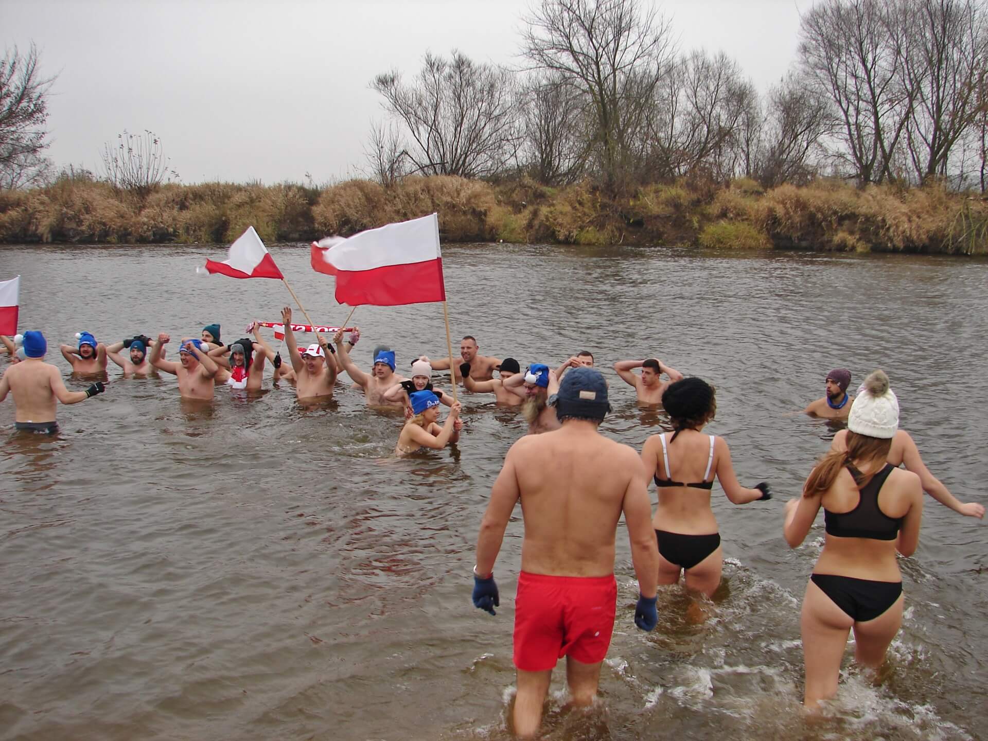 Łomżyńskie morsy uczciły 100. rocznicę odzyskania niepodległości przez Polskę odśpiewaniem hymnu, stojąc po szyję w nurtach Narwi. Przed południem kilkudziesięciu zwolenników wchodzenia nawet do lodowatej wody, spotkało się na plaży miejskiej w okolicach mostu Hubala.