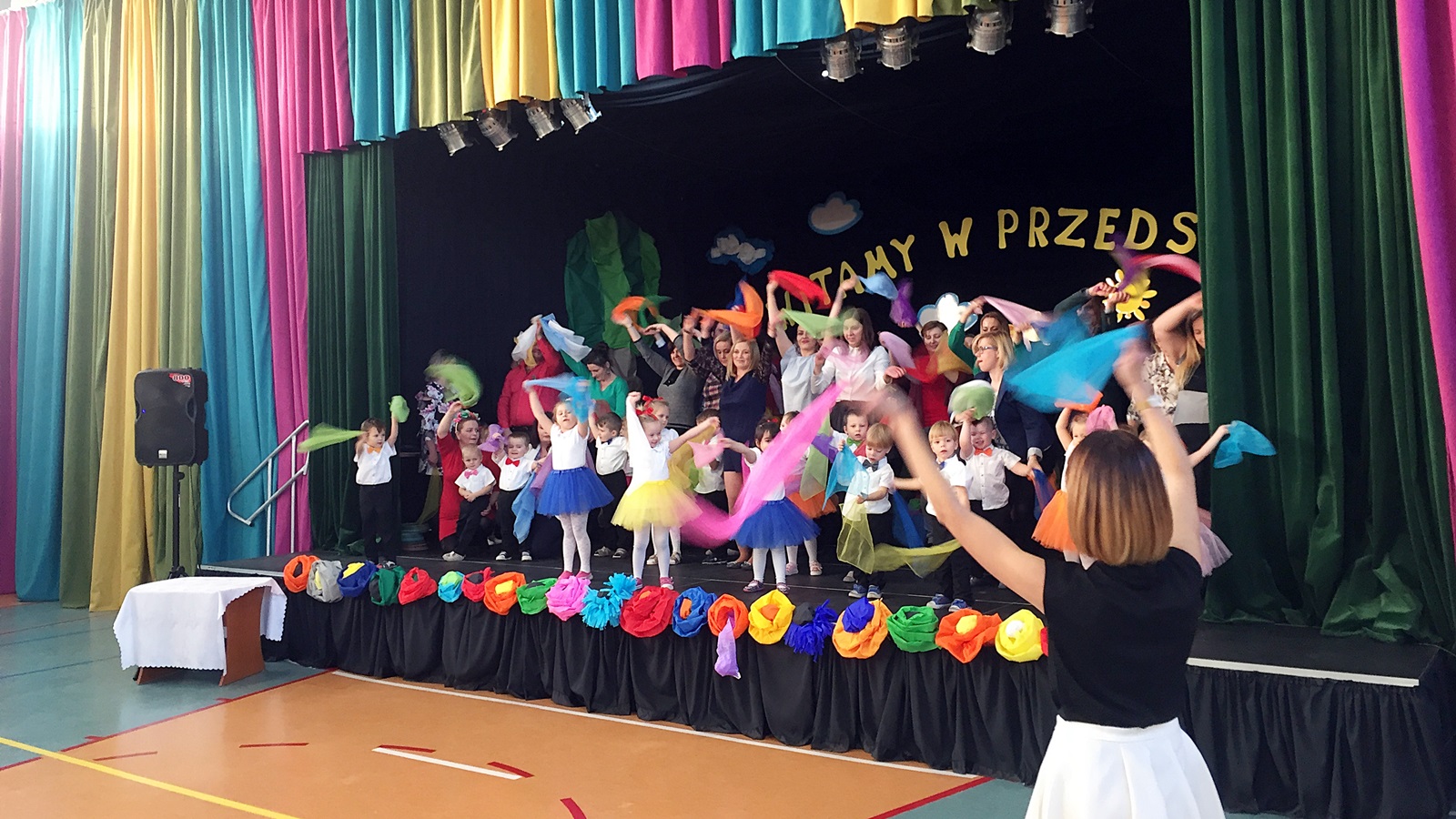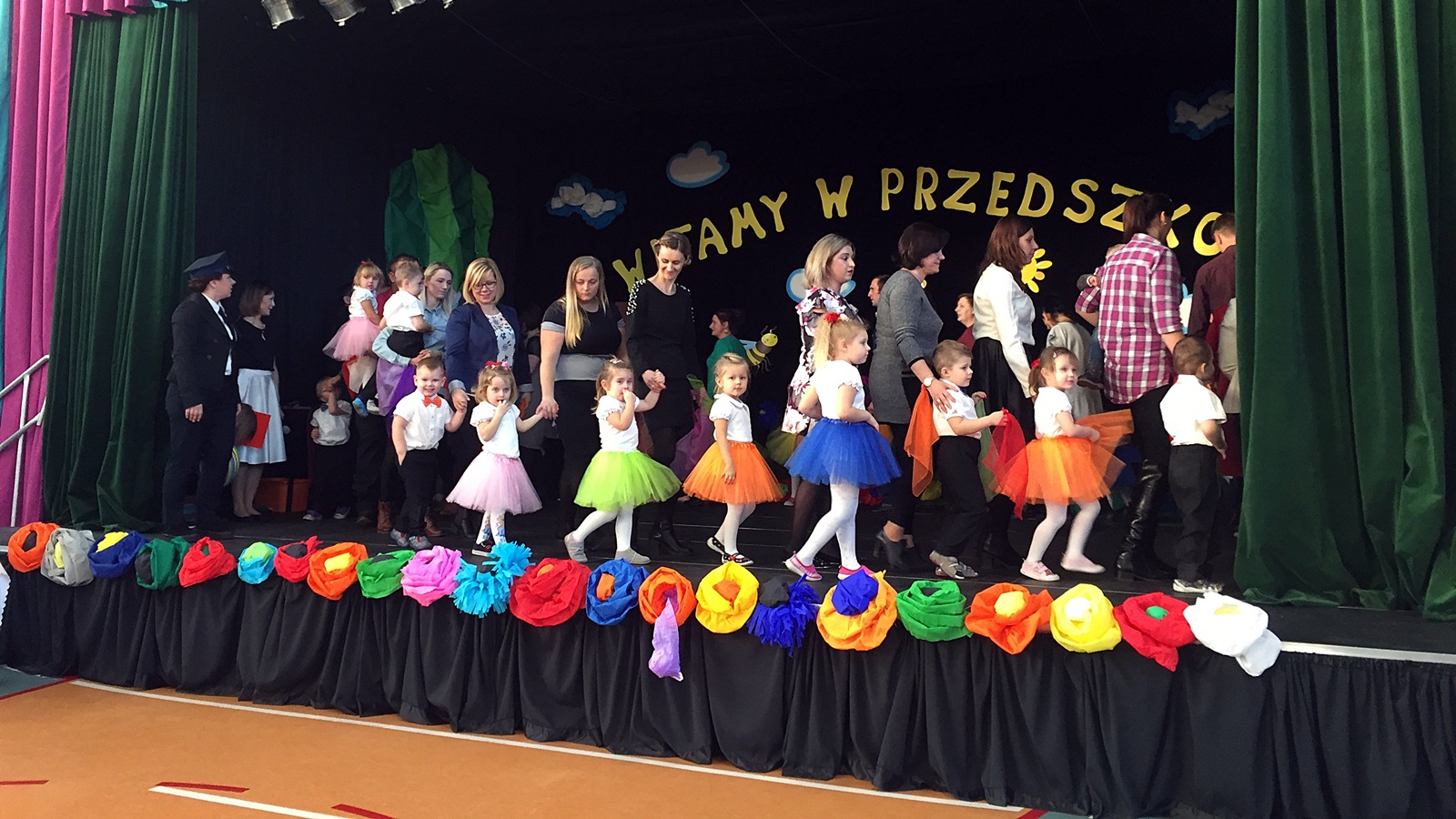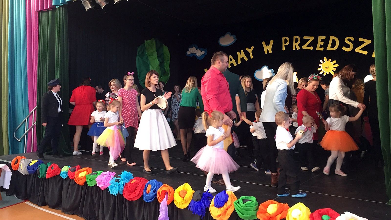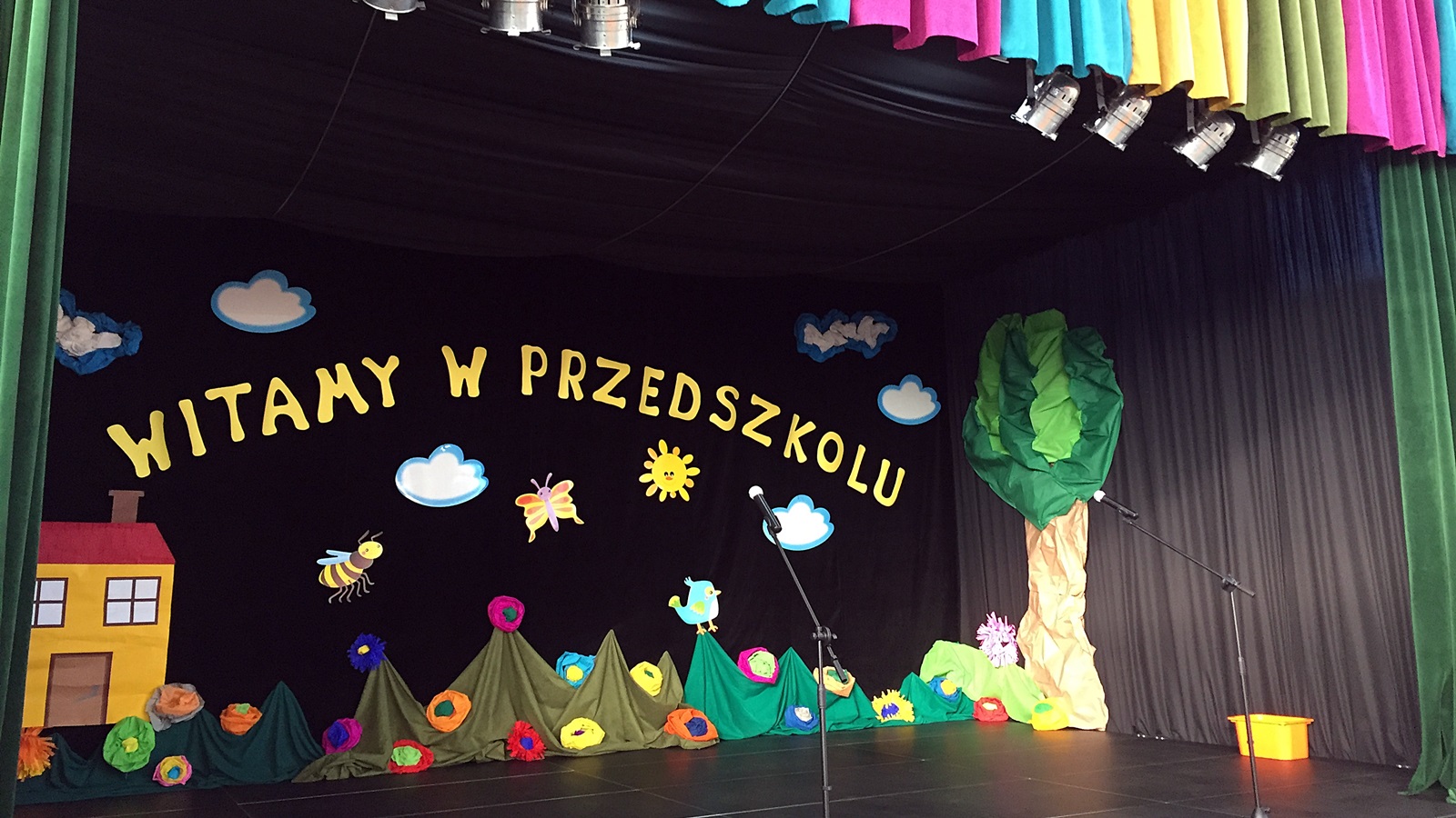 Mamy piękne przedszkole, kolorowe, wspaniale wyposażone z ogromną halą na wzór Fikolandu i profesjoną sceną teatralną. W tej chwili mamy niewiele, bo czterdzieścioro dzieci, ale na drugi rok, spodziewamy się, że będziemy mieli komplet. Docelowo, chcemy, aby stworzyć cztery oddziały, na razie są dwa.