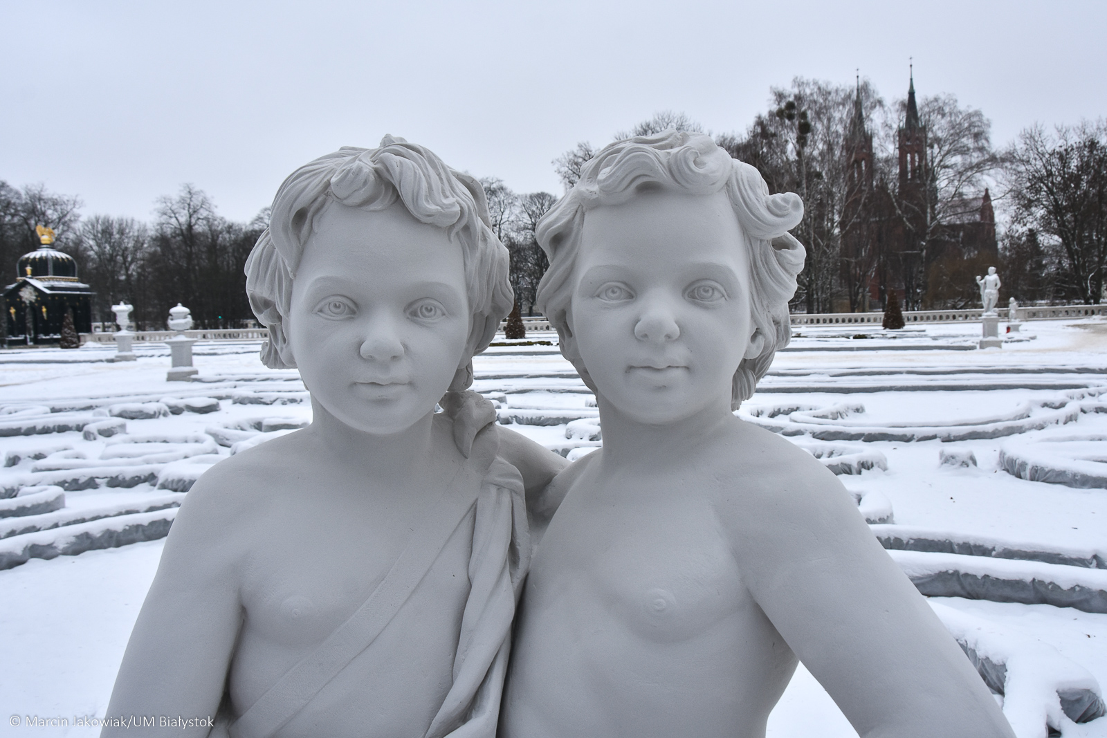 Warto wybrać się na zimowy spacer do ogrodów Pałacu Branickich i podziwiać 12 znaków zodiaku i 4 żywioły.