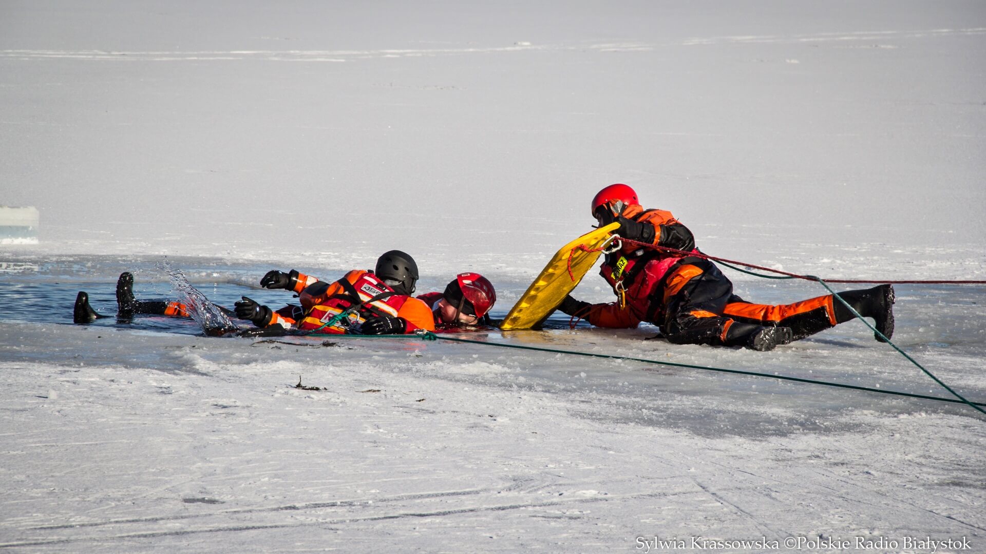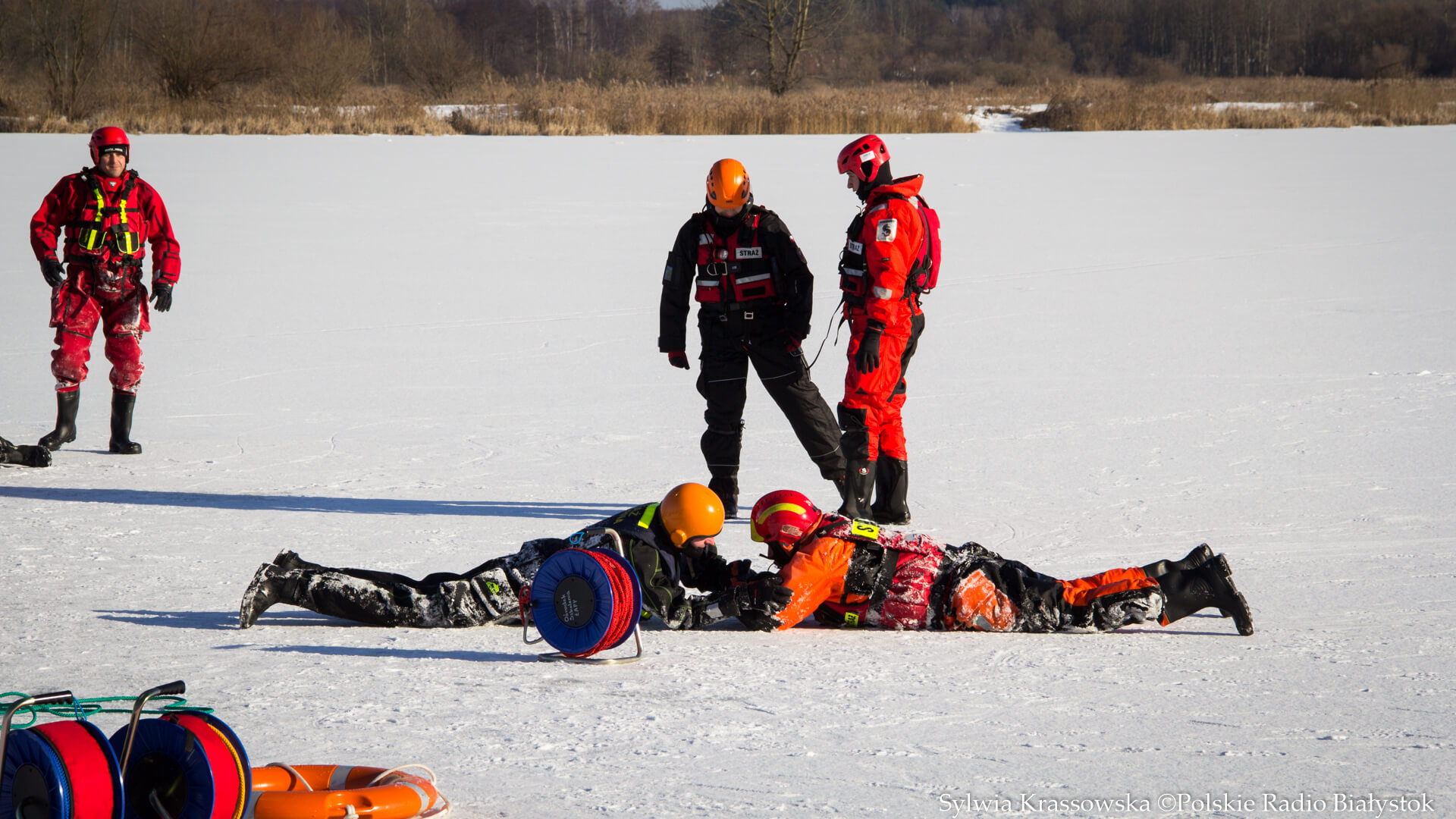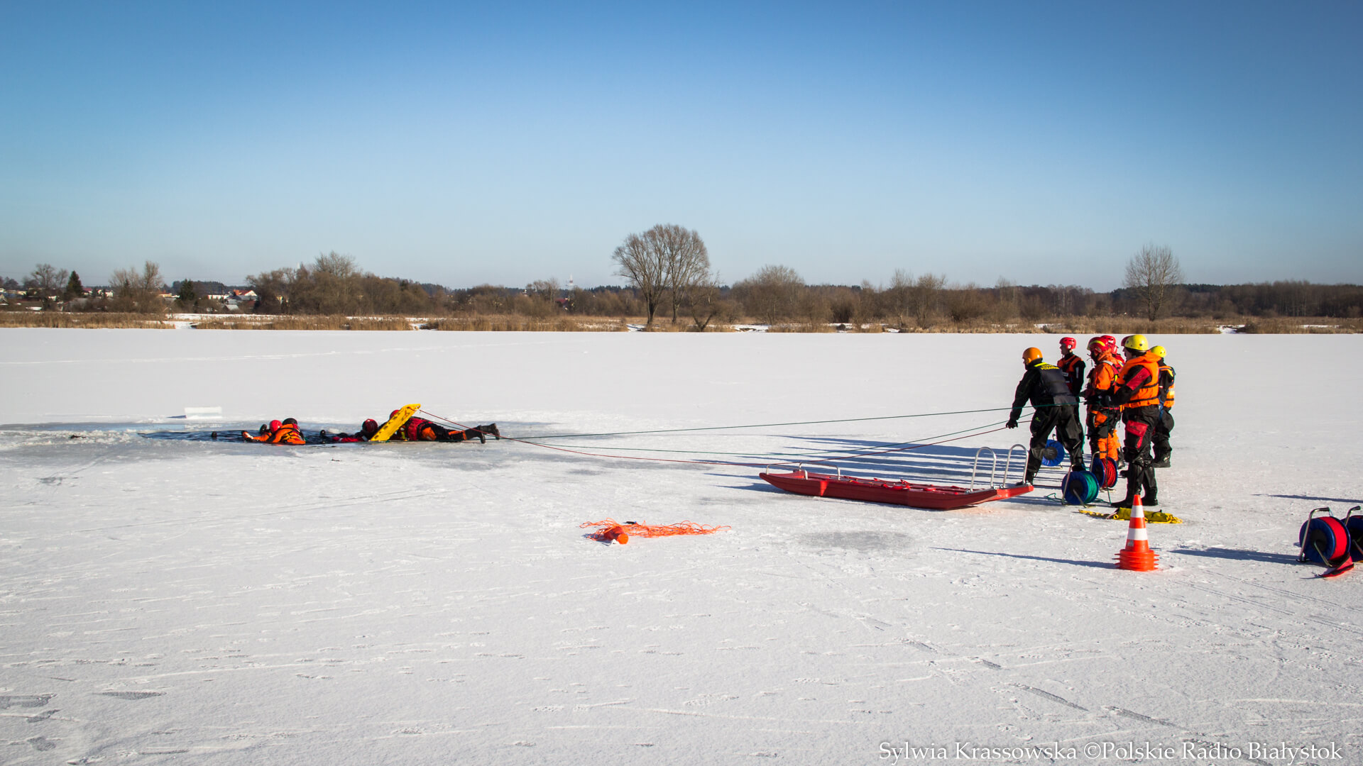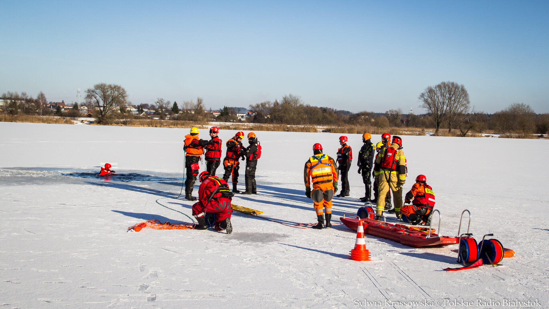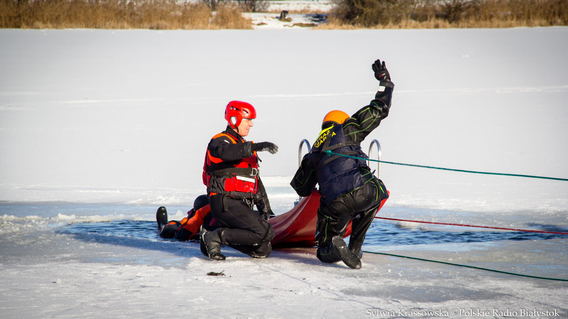 Radio Białystok | Wiadomości | Wiadomości - Nie ma bezpiecznego lodu – podlascy strażacy i policjanci ćwiczyli na białostockich Dojlidach