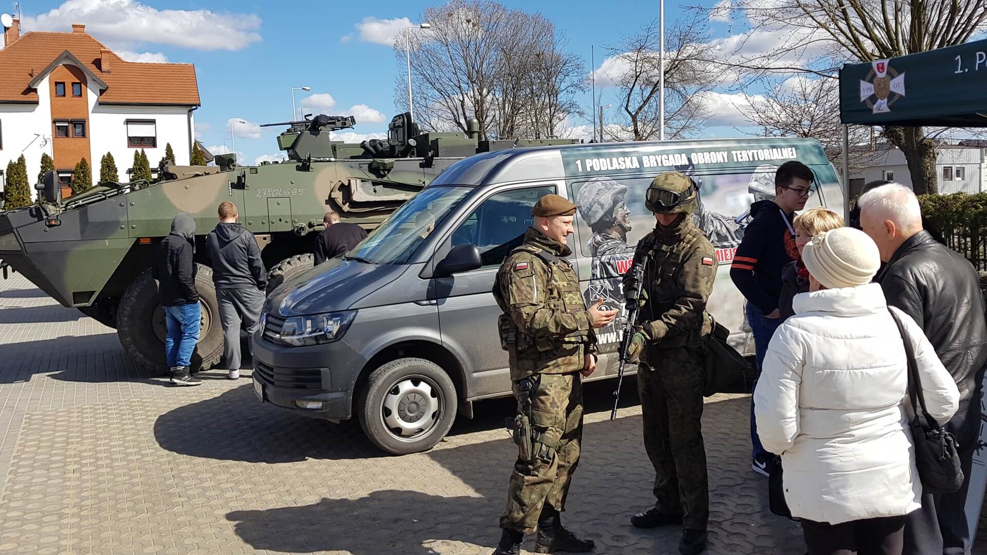Było dużo ciężkiego sprzętu bojowego. Były ustawione dwa namioty ze sprzętem strzelniczym. Byli także żołnierze WOT, którzy chętnie rozmawiali ze zwiedzającymi.