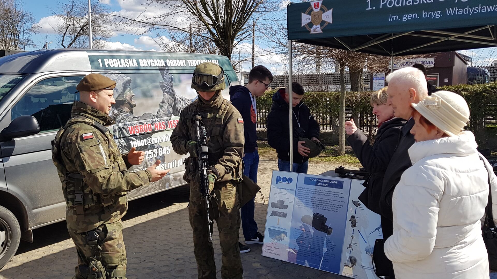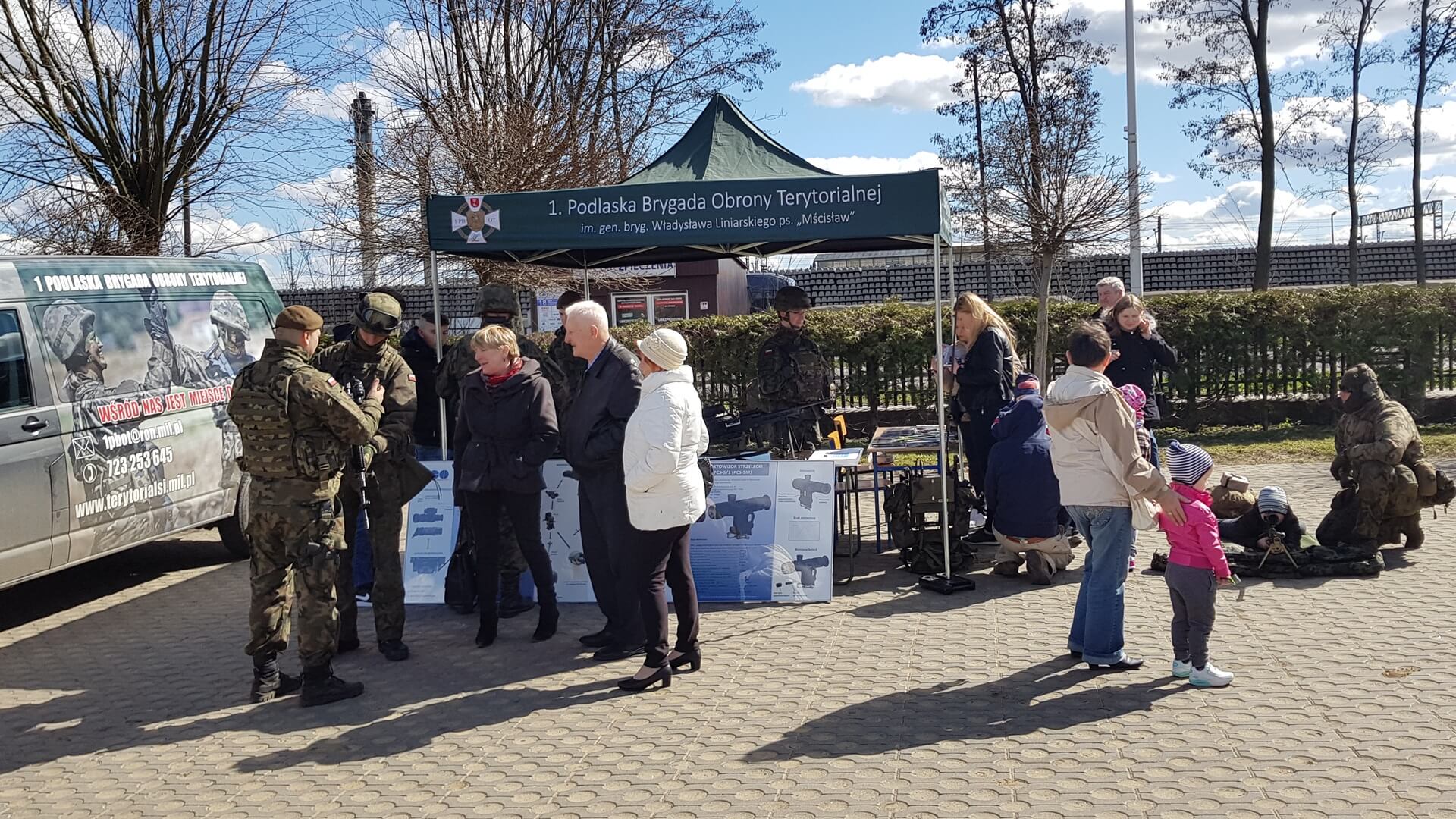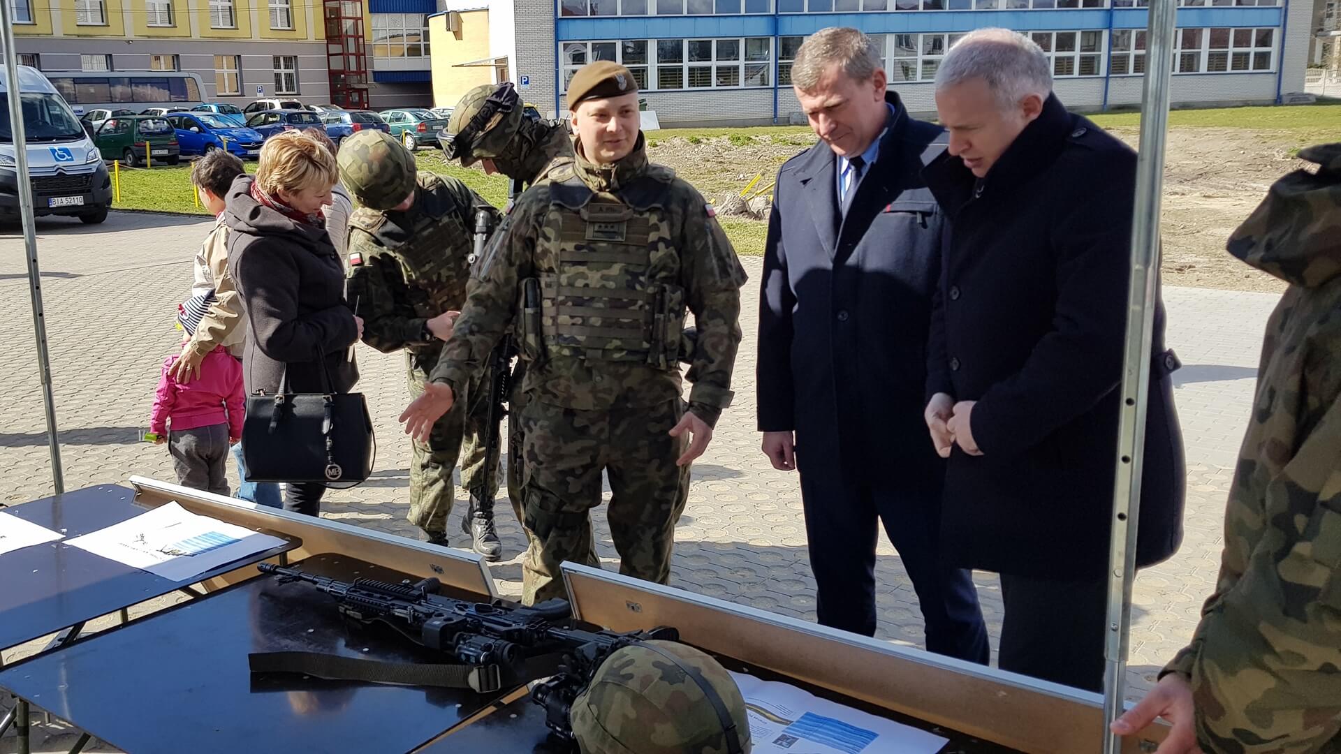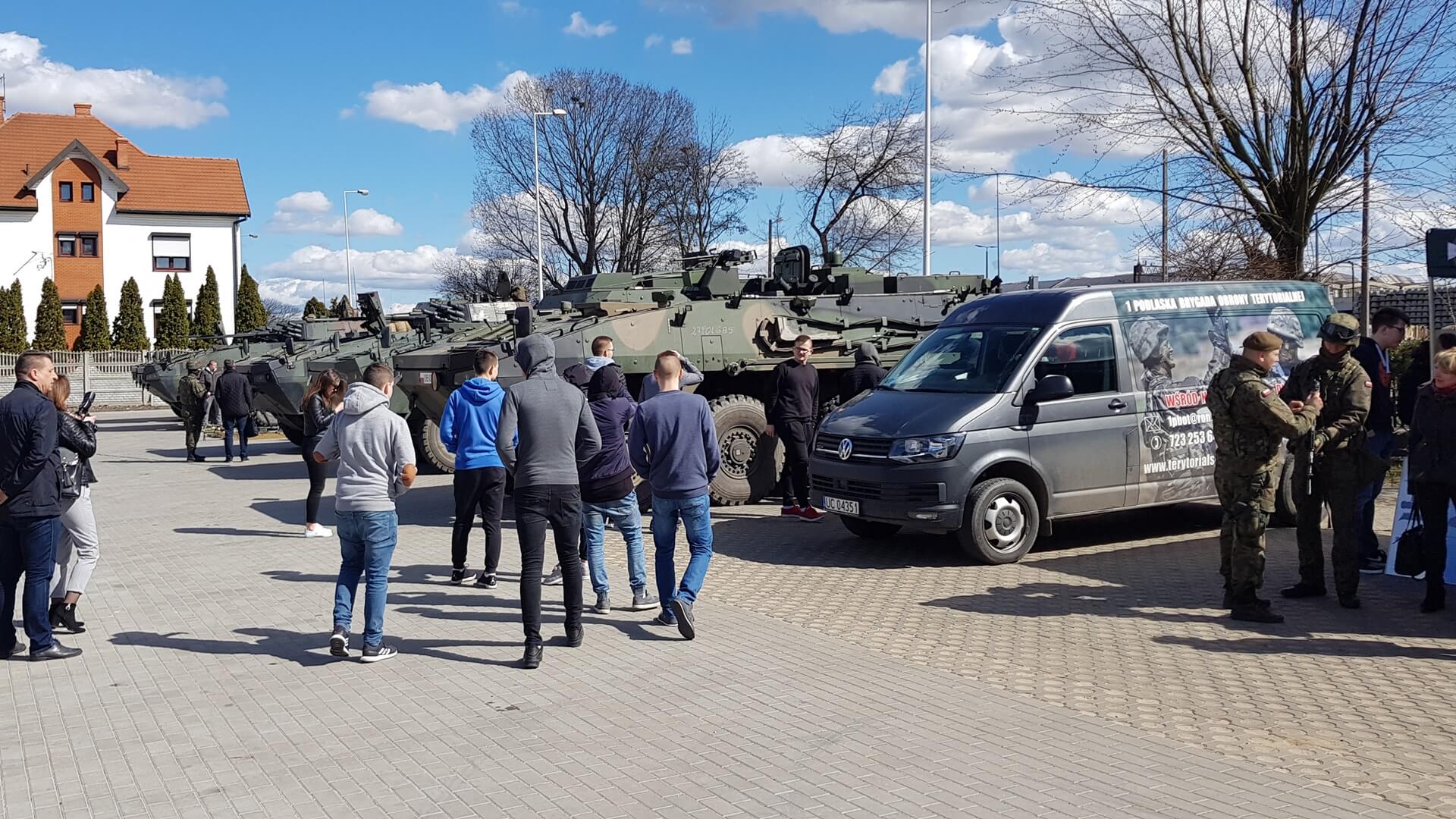 Podlaska Brygada Wojsk Obrony Terytorialnej na parkingu przed Zespołem Szkół Mechanicznych im. Stefana Czarnieckiego zorganizuj piknik militarny.