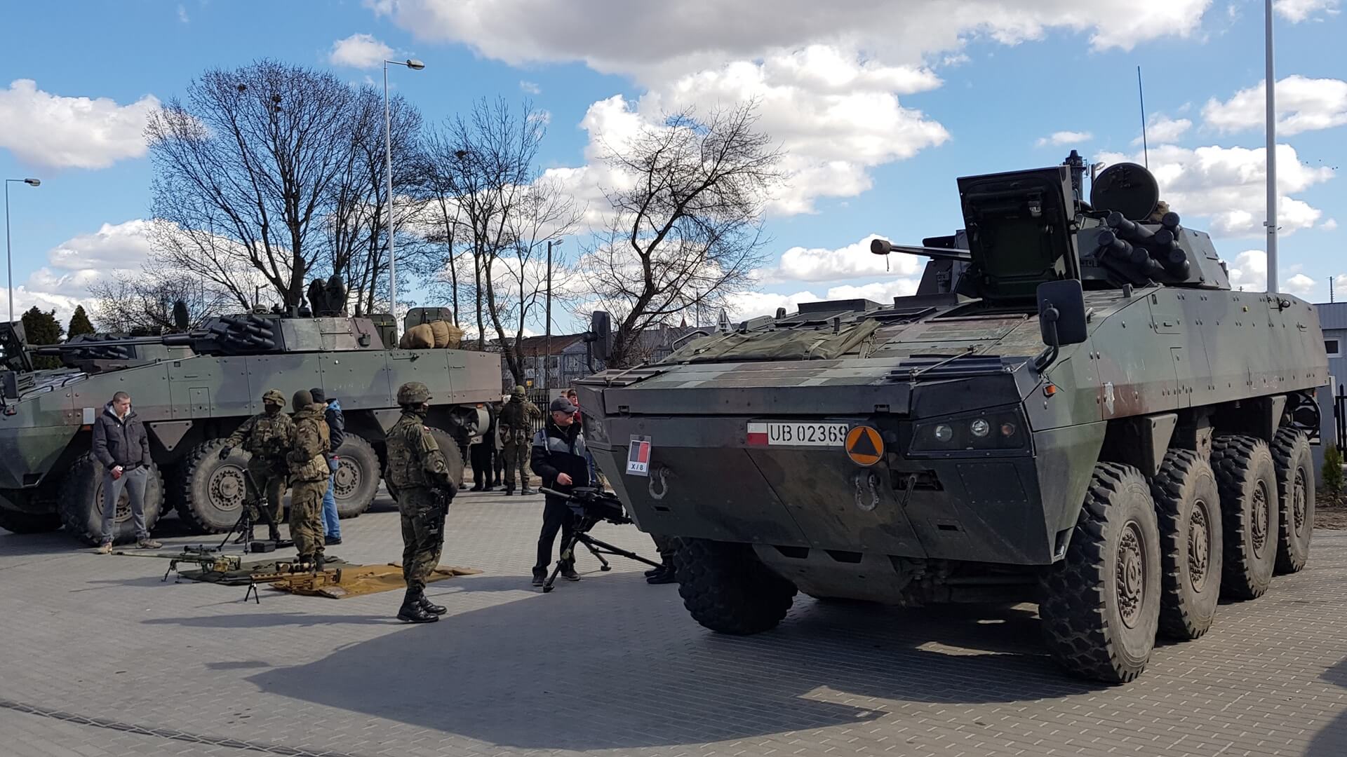 Bojowe transportery - Rosomaki, nowoczesna broń. Między innymi taki sprzęt mogli zobaczyć w poniedziałek (01.04) mieszkańcy Łap.