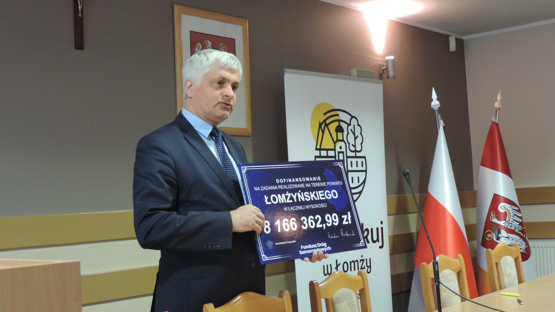 Wojewoda podlaski Bohdan Paszkowski przypomniał w Łomży, że kwota, jaką region dysponuje z Funduszu Dróg Samorządowych na 2019 r. to łącznie 414 mln zł (razem z kwotą na inwestycje tzw. wieloletnie) i jest to czwarta pod względem wysokości środków kwota w kraju.