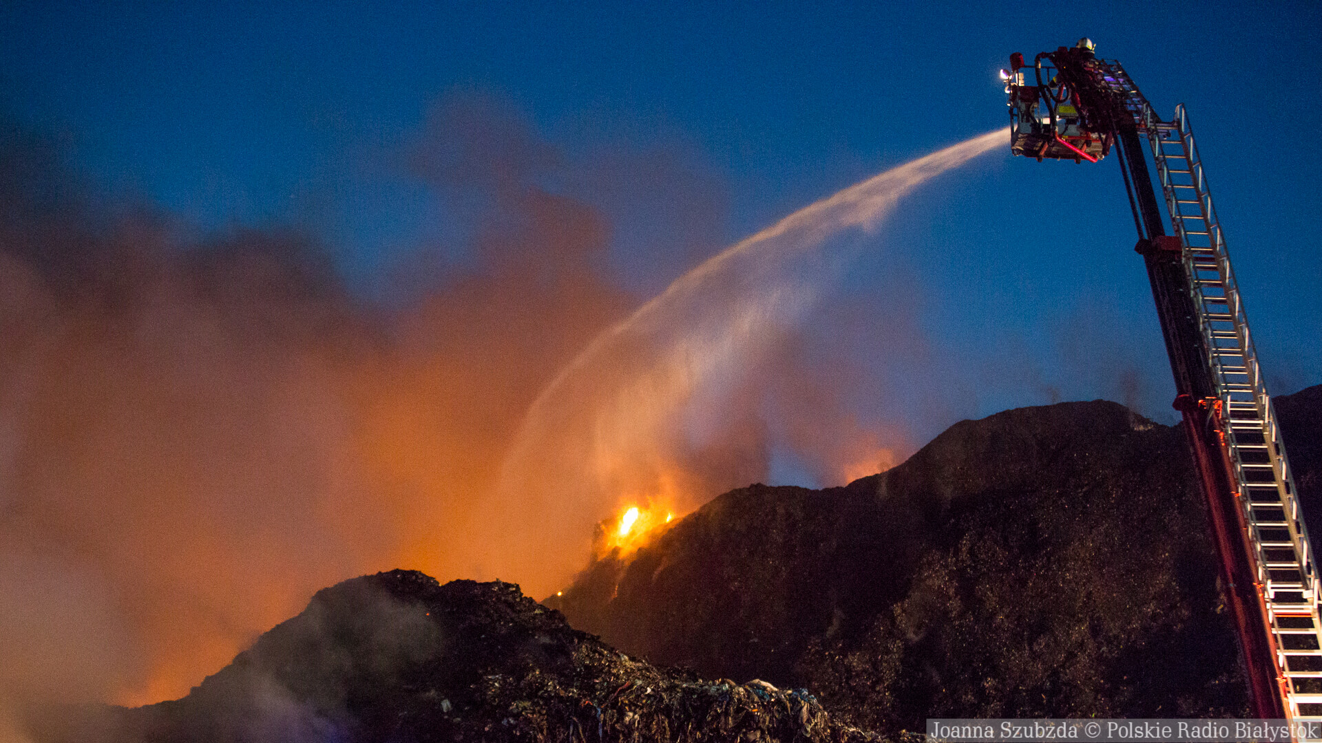 Od rana w czwartek trwało dogaszanie hałdy w miejscach, gdzie pojawiał się dym. Rozpoczęło się też zasypywanie jej żwirem. Doświadczenia strażaków z poprzednich akcji w tym miejscu są bowiem takie, że to najskuteczniejszy sposób stłumienia ewentualnych, nowych zarzewi ognia, który może tlić się wewnątrz hałdy odpadów.