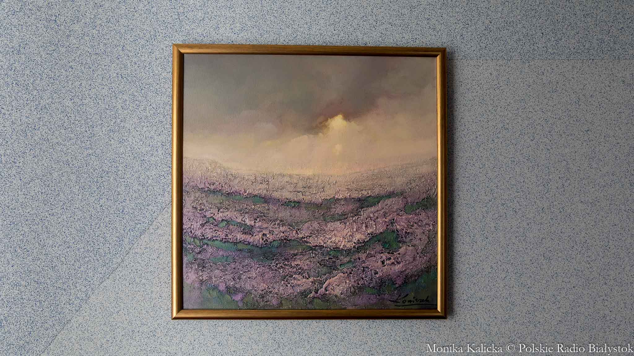 - Do udziału w tej akcji  nie trzeba było mnie długo namawiać. Obraz nazywa się "Wrzosowiska", format 60 na 60. To taki romantyczny rzut na piękne  nasze Podlasie, okolice Goniądza - mówi o swoim obrazie Krzysztof Koniczek.