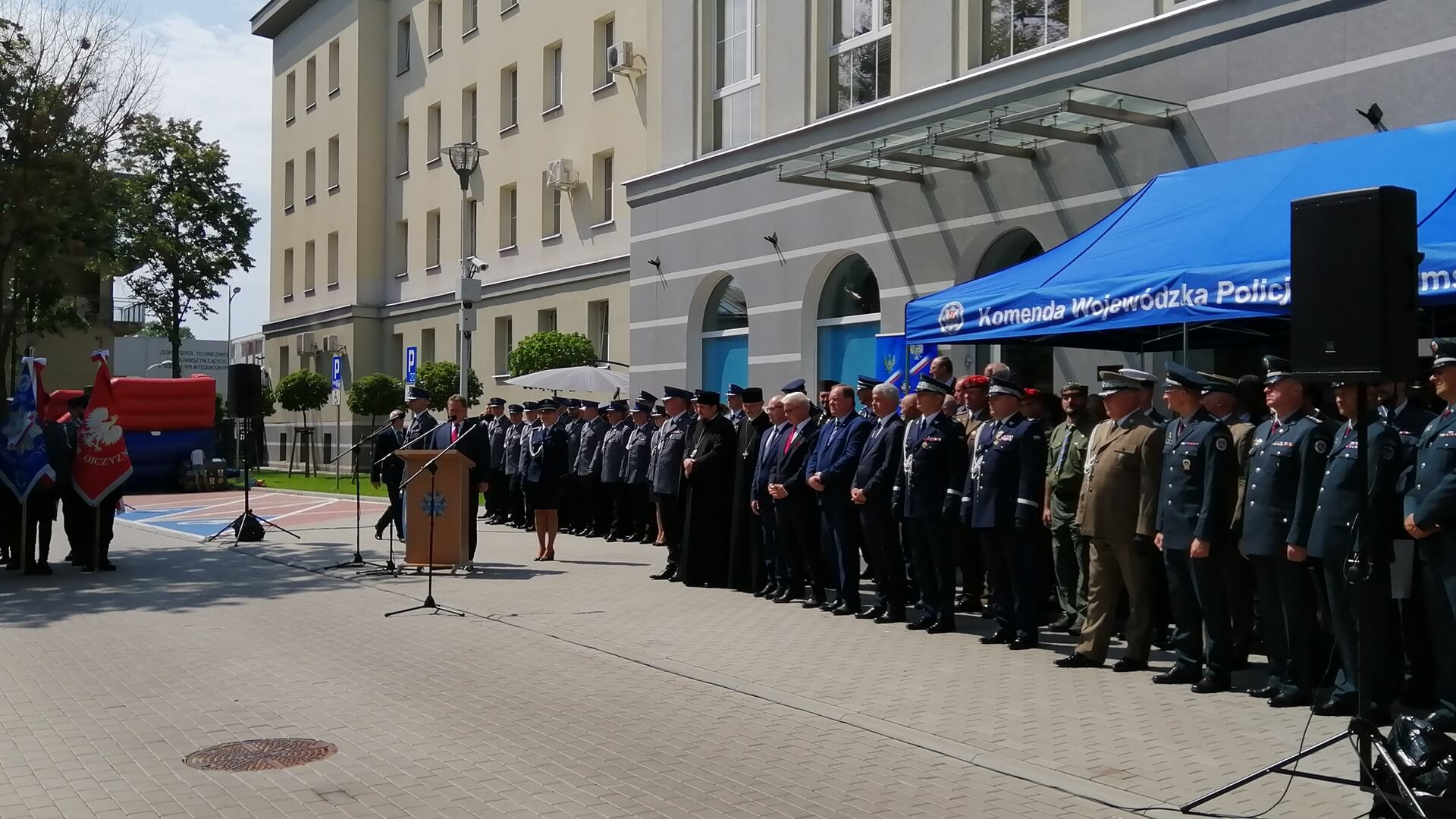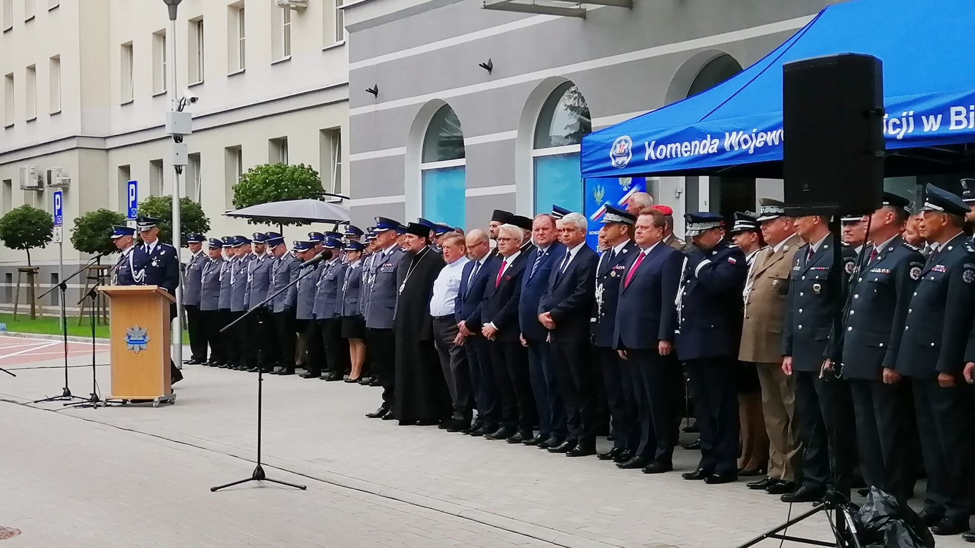 W uroczystościach, które odbyły się na placu przed Komendą Wojewódzką Policji w Białymstoku, wzięli udział m.in. wiceminister MSWiA Jarosław Zieliński, komendant wojewódzki policji nadinsp. Daniel Kołnierowicz, przedstawiciele innych służb mundurowych, władz województwa, duchowni oraz rodziny policjantów.