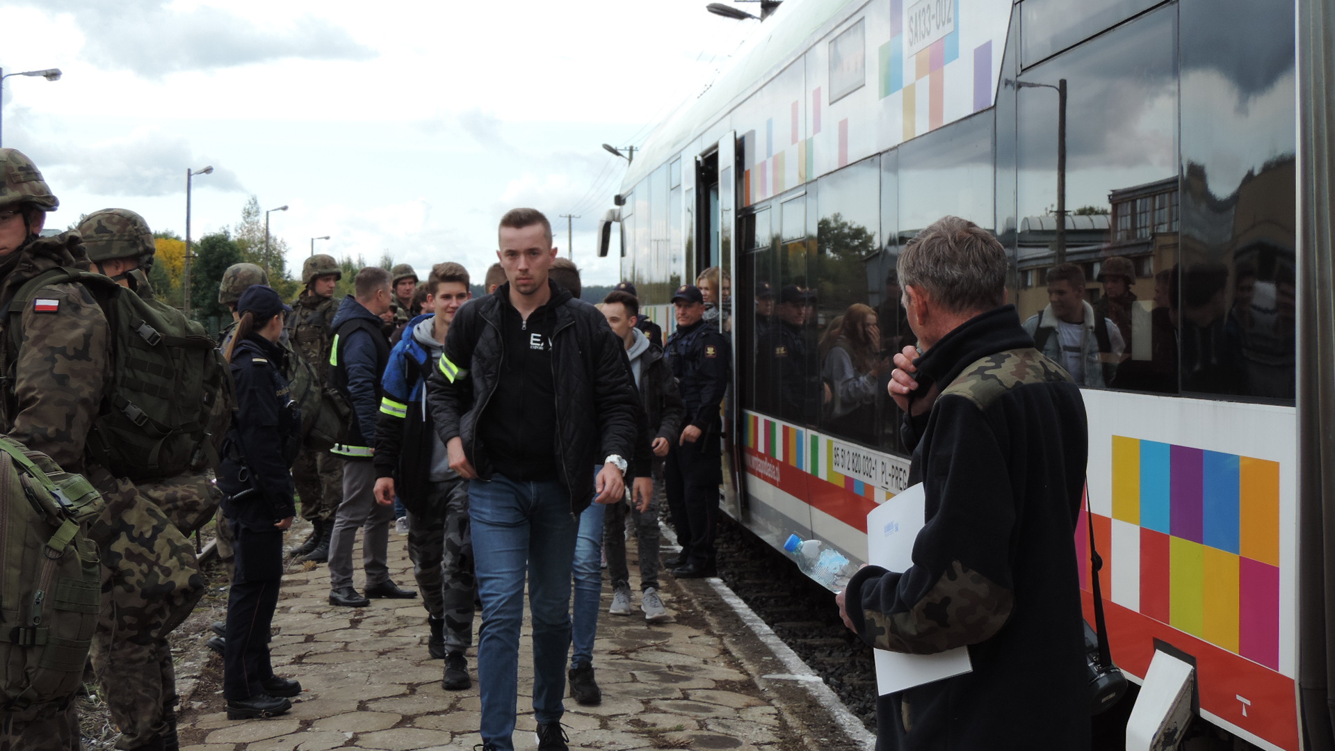 W przypadku ewakuacji kolejowej pociągami podlaskiego oddziału Przewozów Regionalnych POLREGIO w porozumieniu z PKP PLK, ćwiczenia rozpoczęły się w Szypliszkach i Puńsku, skąd autokarami ewakuowani zostali przewiezieni do pociągu podstawionego w Trakiszkach. Stamtąd ok. stu osób (uczniów dwóch szkół w Łomży) dojechało pociągiem do stacji kolejowej w Sokołach, gdzie - wedle założeń - część osób została zakwaterowana w szkole, a część przewieziona do Wysokiego Mazowieckiego. Pozostałe ok. 50 osób pojechały pociągiem do Kołaków Kościelnych, by autokarem trafić do gminy Rutki.