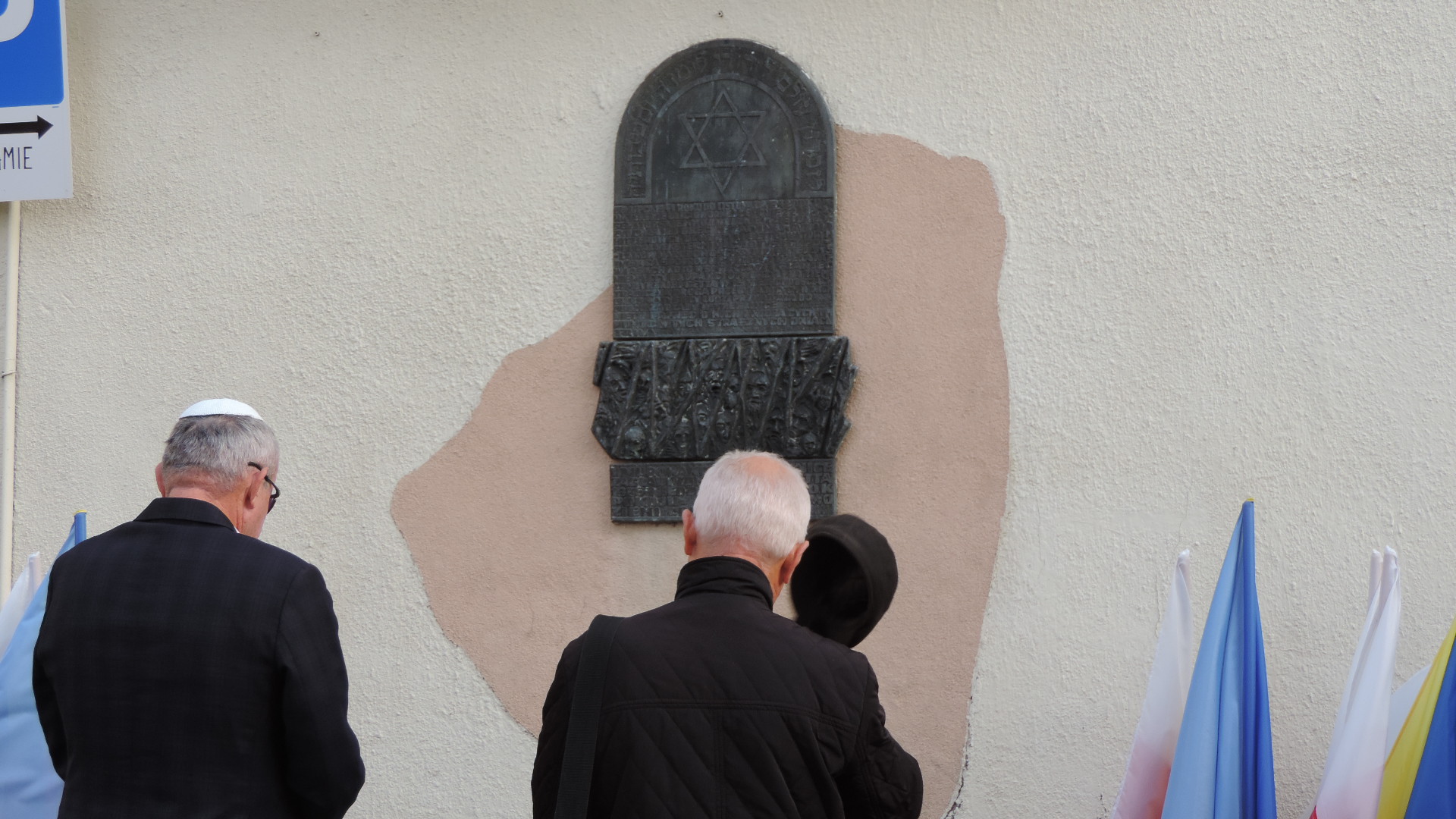 W miejscu, gdzie podczas okupacji był mur getta, a wcześniej spalona przez Niemców Wielka Synagoga, ponad 30 lat temu wmurowano pamiątkową tablicę z brązu.