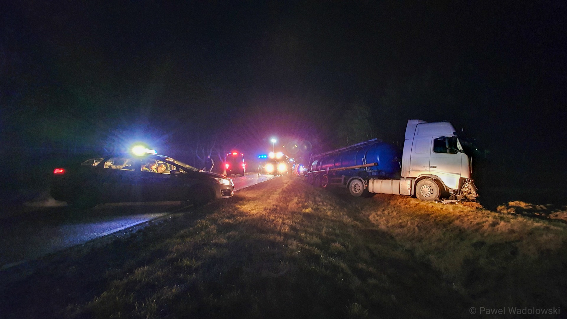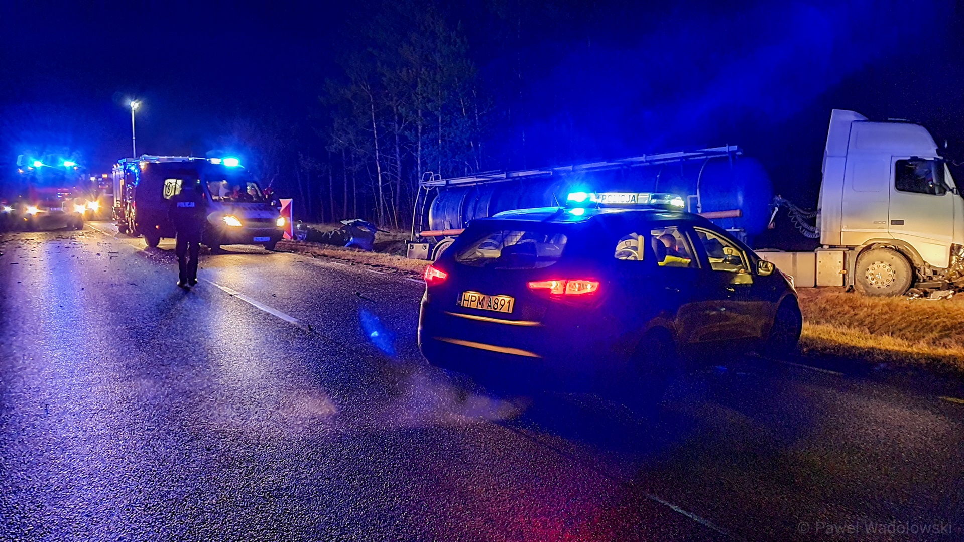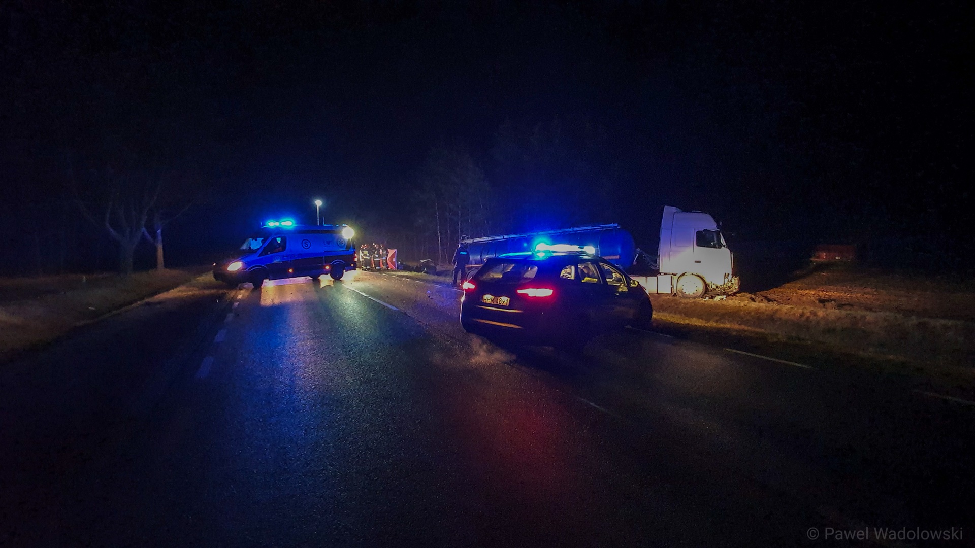 Zablokowana jest droga krajowa nr 61 na odcinku Łomża - Ostrołęka. Koło miejscowości Rydzewo doszło do czołowego zderzenia samochodu ciężarowego z osobowym. Jak wynika ze wstępnych ustaleń kierowca Opla Vectry który jechał w kierunku Łomży, przed Rydzewem najprawdopodobniej zaczął wyprzedzać dwa inne pojazdy. W wyniku tego manewru doprowadził do zderzenia z jadącym w stronę Ostrołęki ciężarowym Volvo. W tej chwili na miejscu pracują służby ratunkowe. Mężczyzna Opla zmarł.