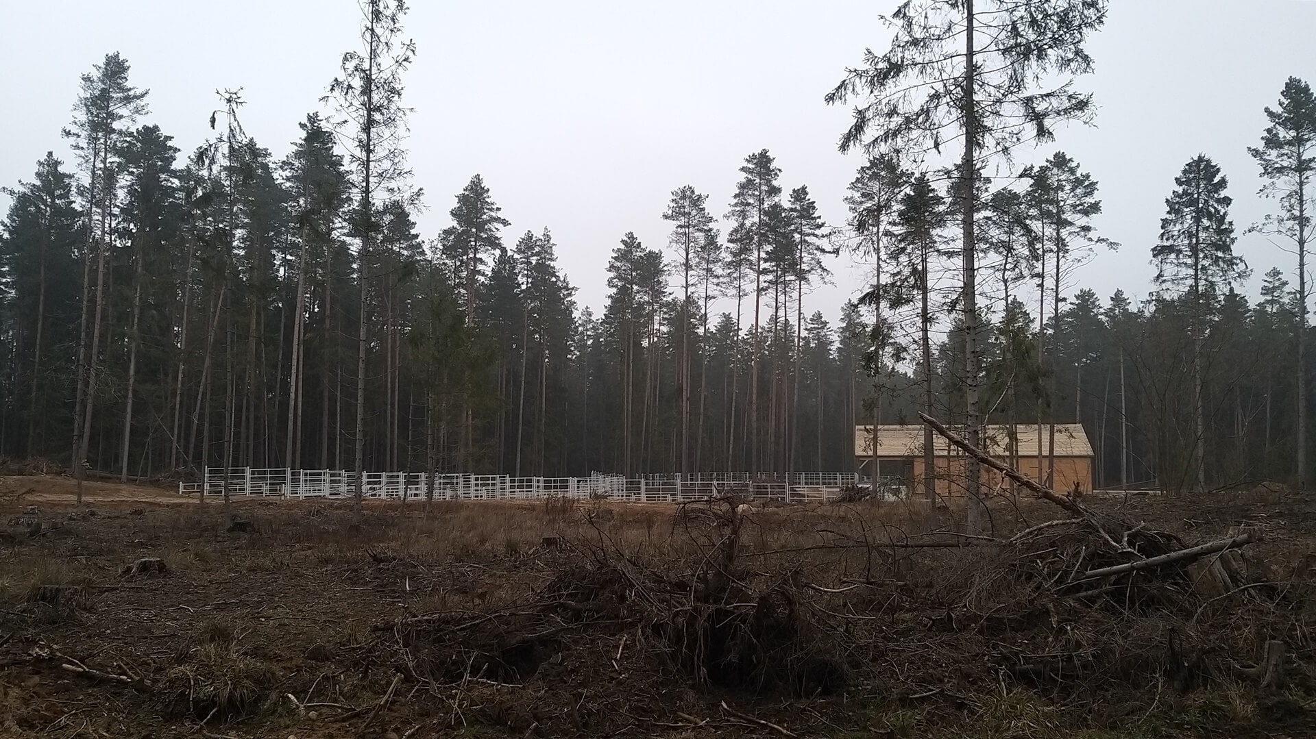 Na razie pod budowę tej zagrody wycięto fragment lasu, teren jest już otoczony specjalnym podwójnym dużym, metalowym i masywnym płotem.
