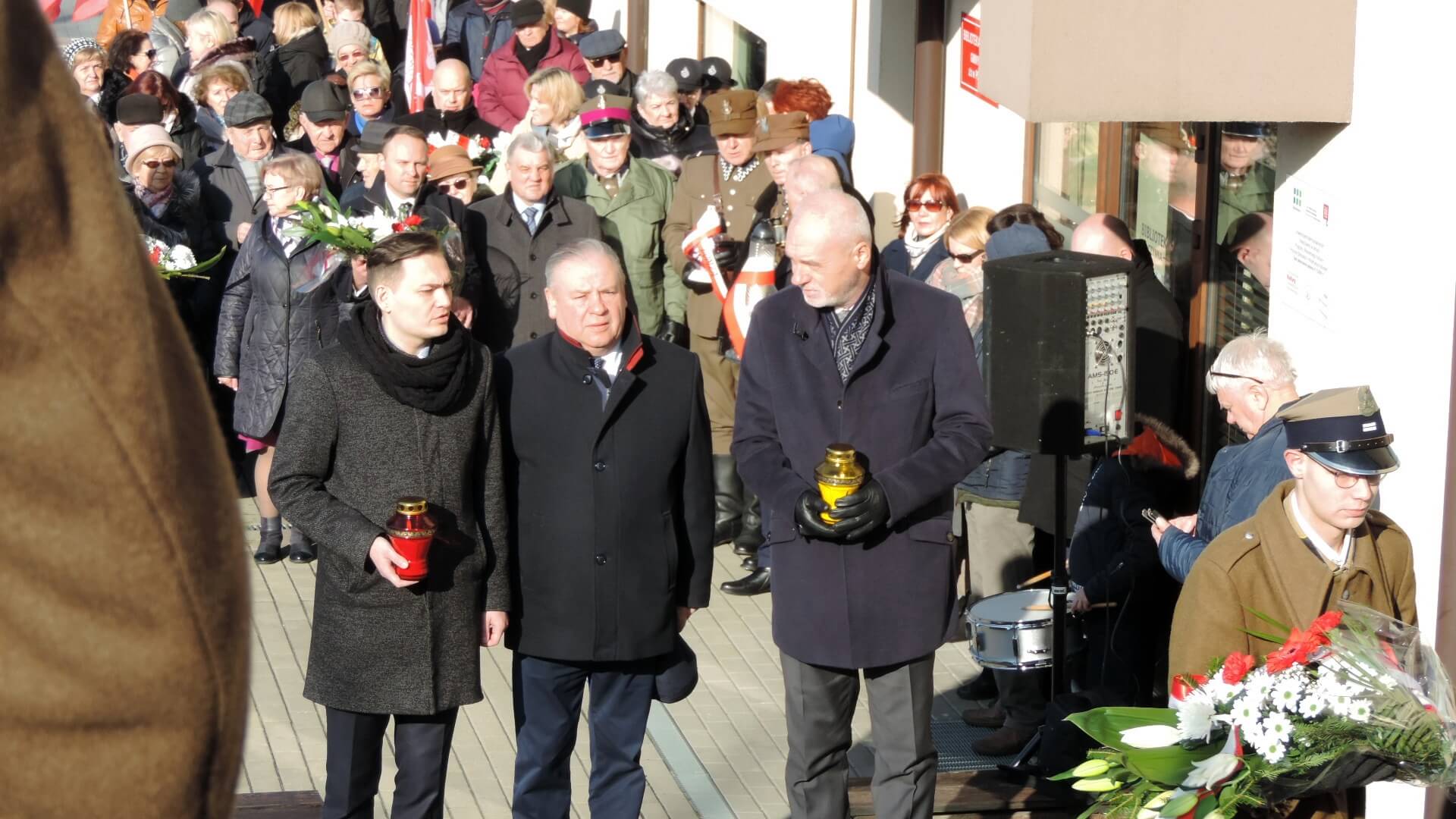 Po złożeniu kwiatów i zapaleniu zniczy, zebrani przeszli do Biblioteki Publicznej Gminy Łomża na dalszą część obchodów rocznicy - część artystyczną, wystąpienia gości i prelekcje.