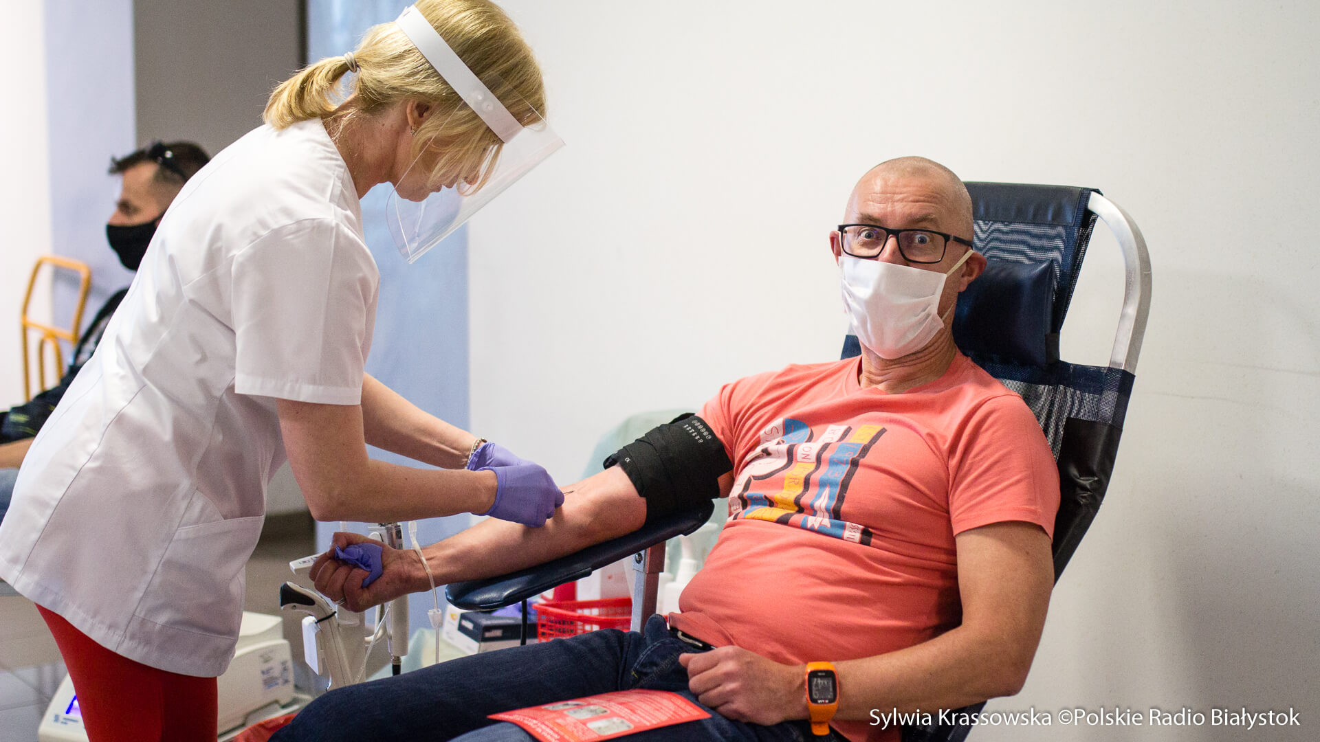 dźwięk do pobraniaDziennikarze Polskiego Radia Białystok oddają krew - relacja Marcina Mazewskiego | Pobierz plik.