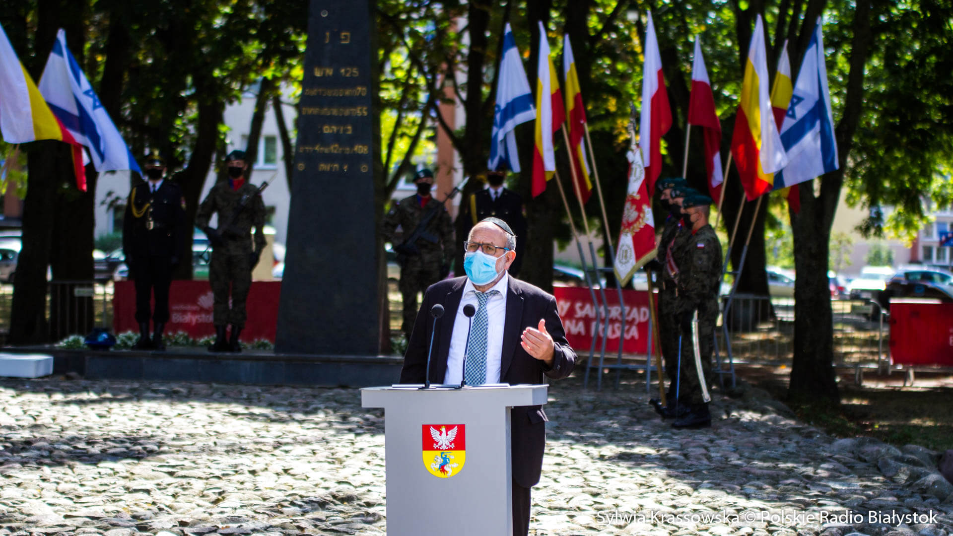 W związku z pandemią koronawirusa nie było m.in. przedstawicieli dawnej społeczności Żydów białostockich mieszkających obecnie w Izraelu oraz reprezentantów Yehud - miasta partnerskiego Białegostoku, które nadesłało okolicznościowy list. List do uczestników i organizatorów uroczystości skierował też premier Mateusz Morawiecki i ambasada Izraela w Polsce.