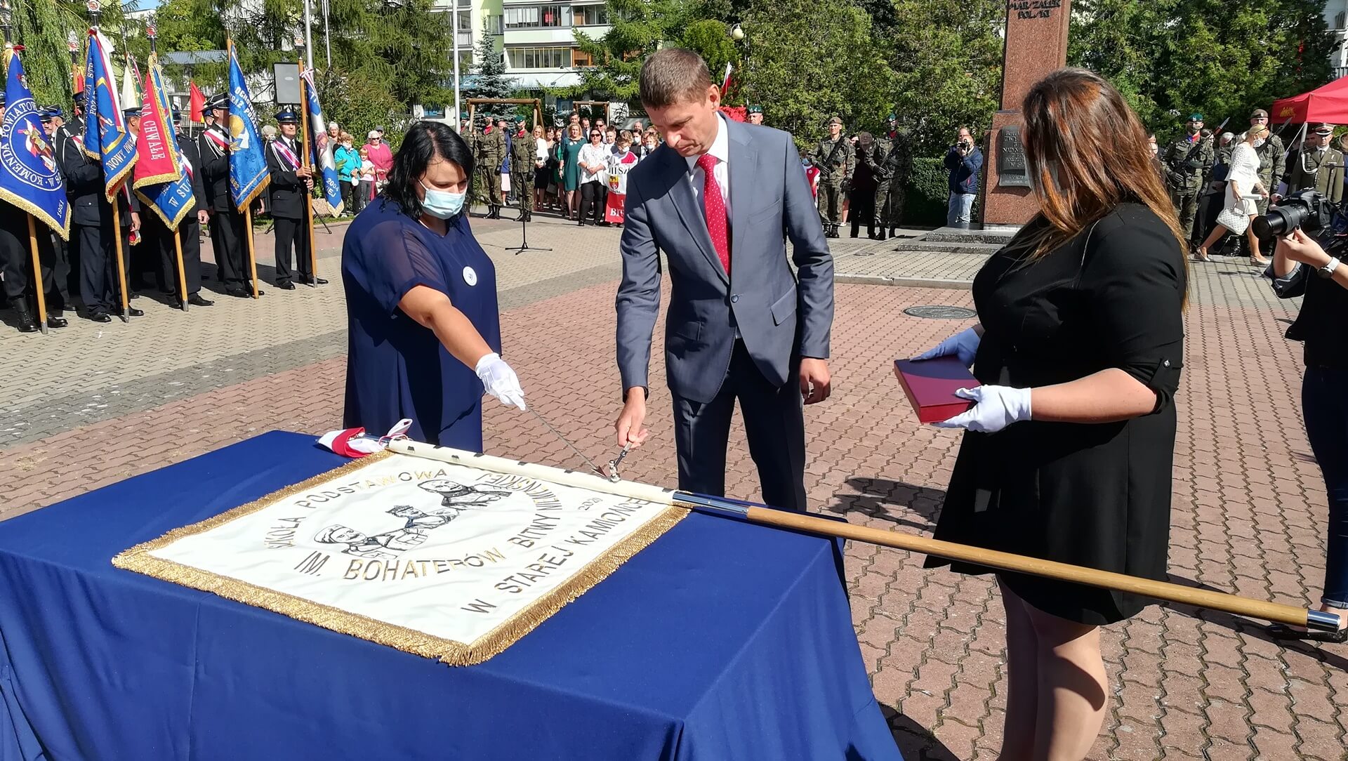 Odsłonięta została pamiątkowa tablica, ufundowana przez IPN. "W setną rocznicę bitwy niemeńskiej, bohaterom poległym za niepodległość ojczyzny i w obronie jej granic - wdzięczni sokólczanie" - taki napis na niej się znalazł. Szkoła podstawowa w Starej Kamionce (gmina Sokółka) od niespełna trzech miesięcy nosząca imię Bohaterów Bitwy Niemeńskiej, otrzymała sztandar.
