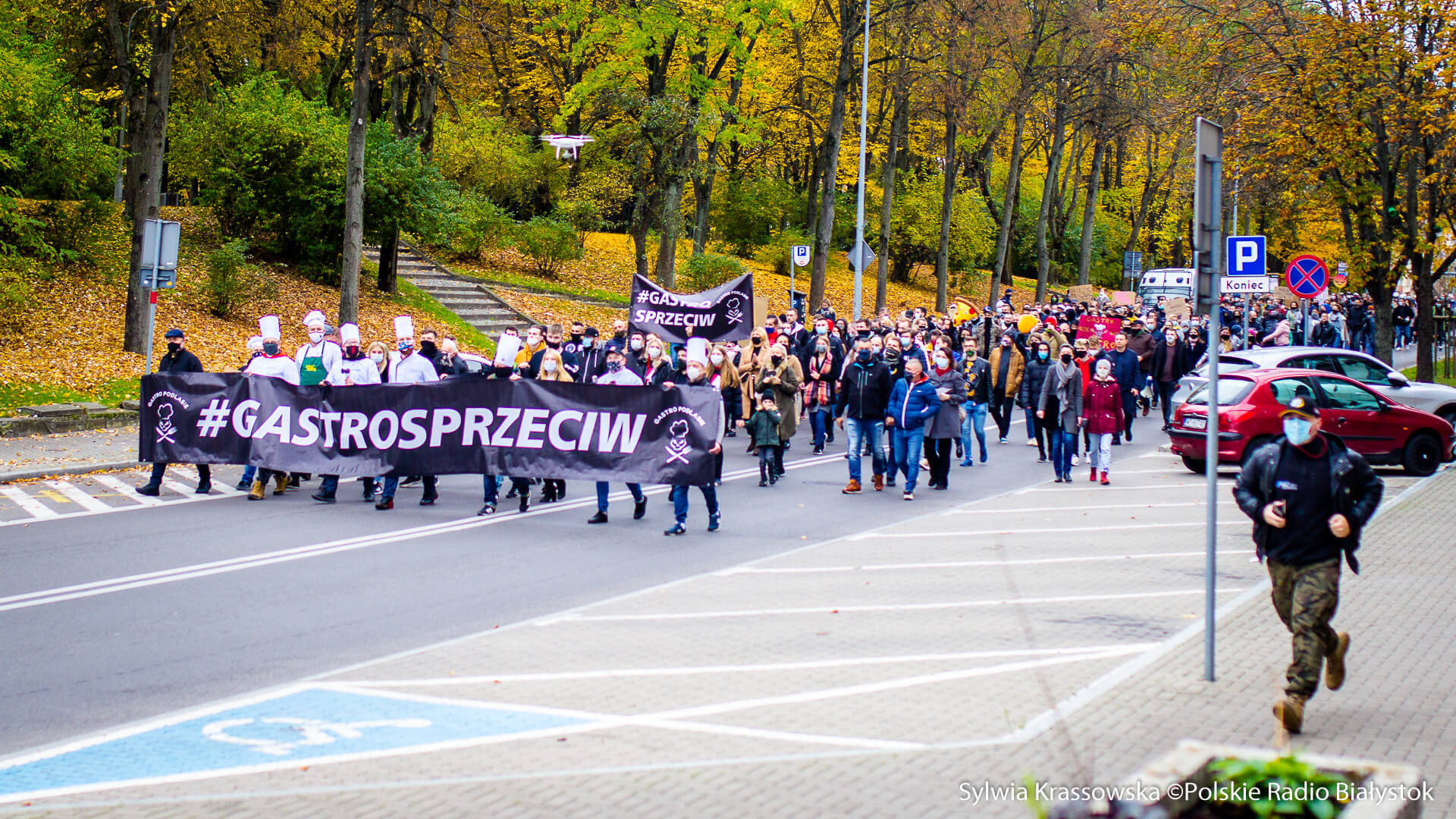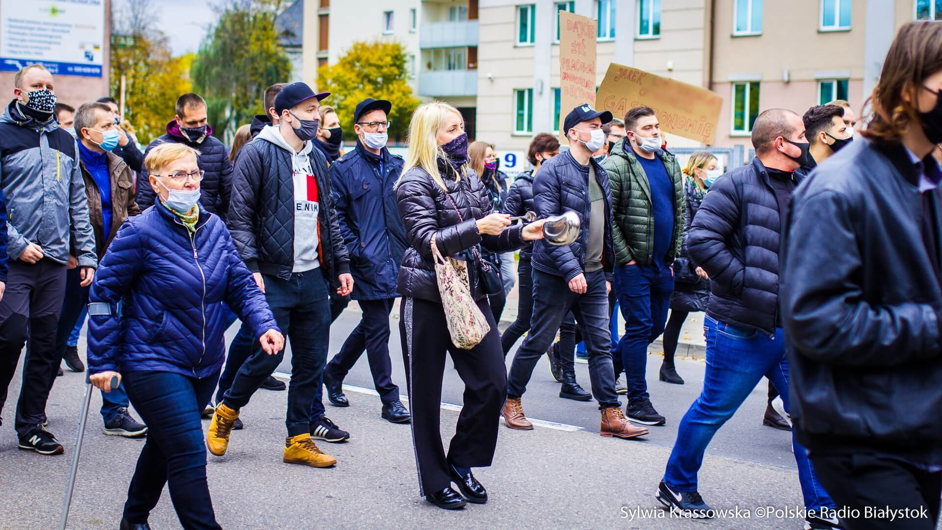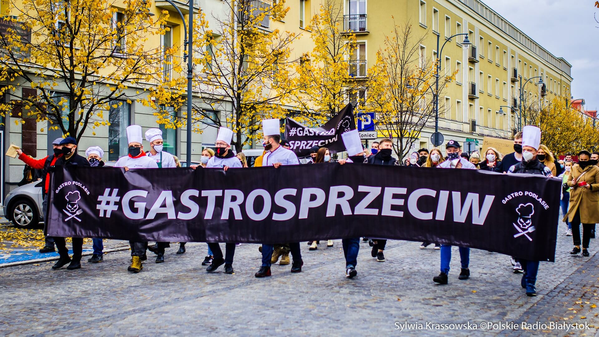 Kilkaset osób związanych z branżą gastronomiczną - właściciele lokali, kelnerzy i kucharze - przeszli w sobotę ulicami Białegostoku, by wyrazić swój sprzeciw w związku z restrykcjami, jakie wprowadził rząd z powodu pandemii koronawirusa. Ich główny apel brzmiał: "dajcie nam pracować".