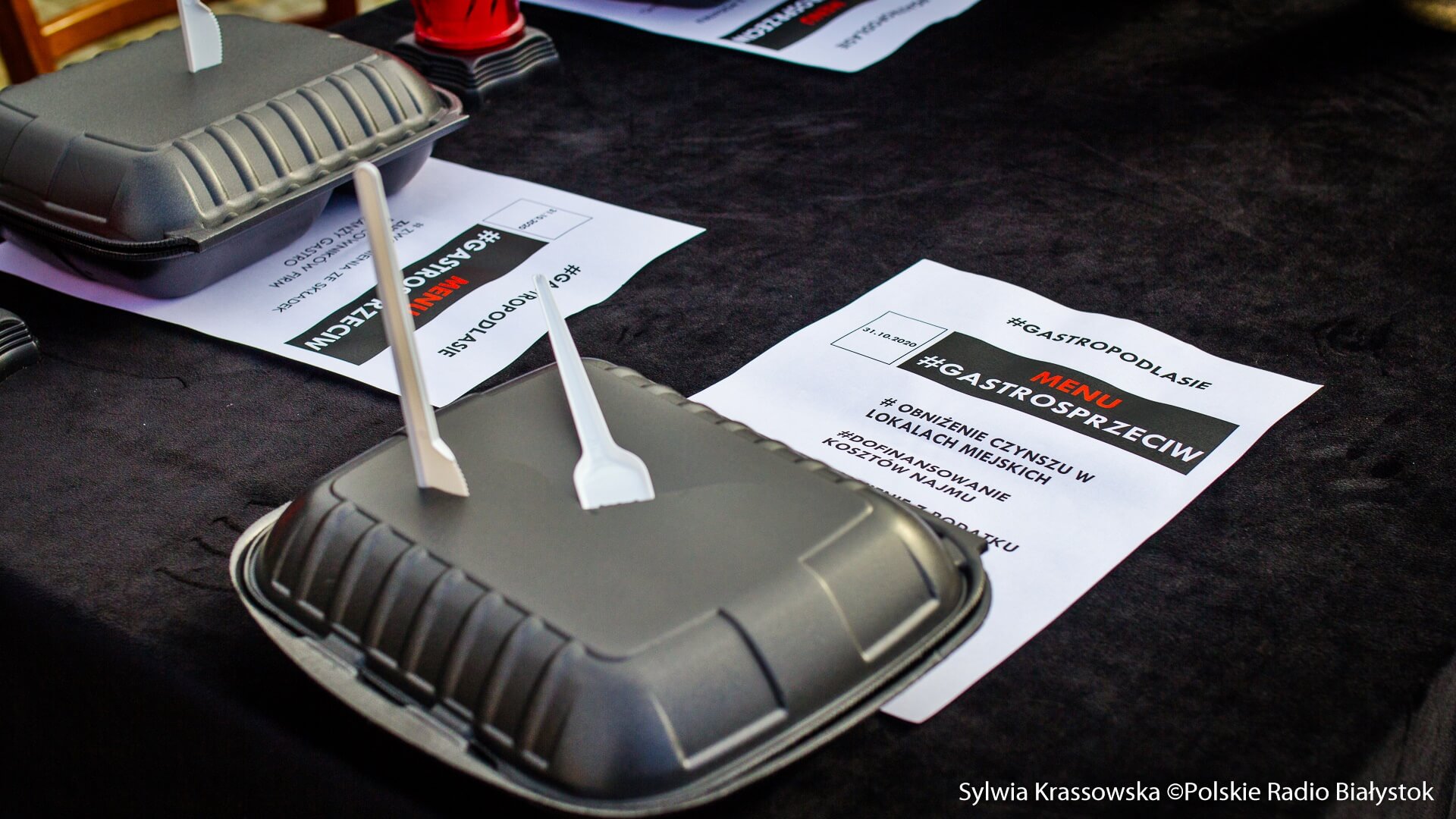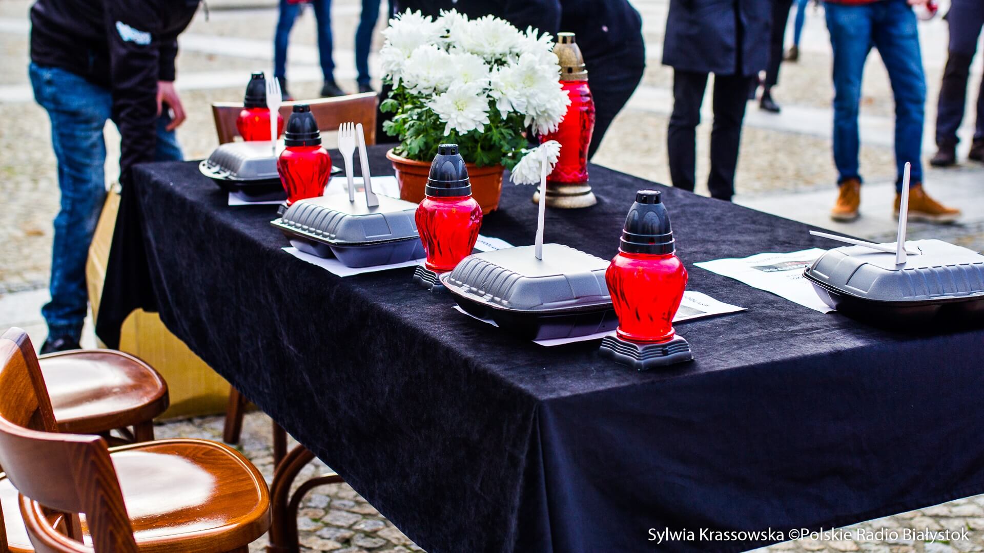 Na Rynku Kościuszki ustawiono też stół z czarnym obrusem i czarną "zastawą" składającą się z pojemników na wynos. Przed stołem usypano grób. Jak mówiono, to jest obraz tego, co zostanie z branży gastronomicznej.
